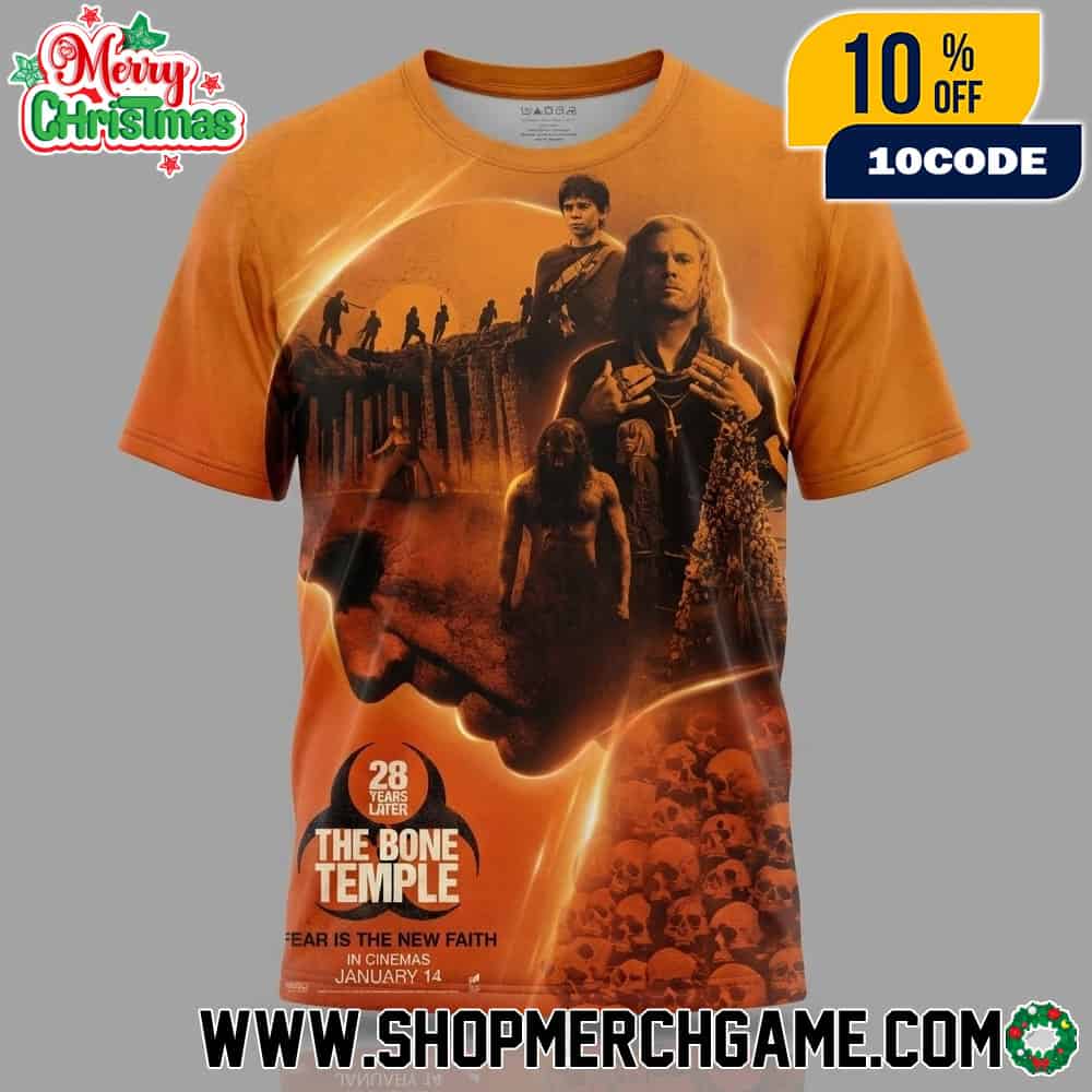 28 Years Later The Bone Temple Movie Poster January 2026 Official Sony Pictures Ralph Fiennes Jack O'Connell Alfie Williams Nia DaCosta Horror Film 3D T-Shirt