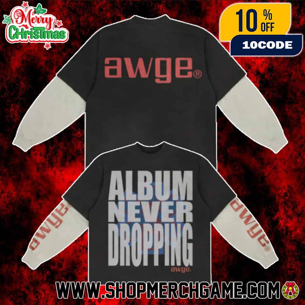 A$AP Rocky Album Never Dropping Long Sleeve T-Shirt Black AWGE Camp Flog Gnaw 2025 Statement Distressed Graphic Sleeves Unisex Limited Edition Streetwear