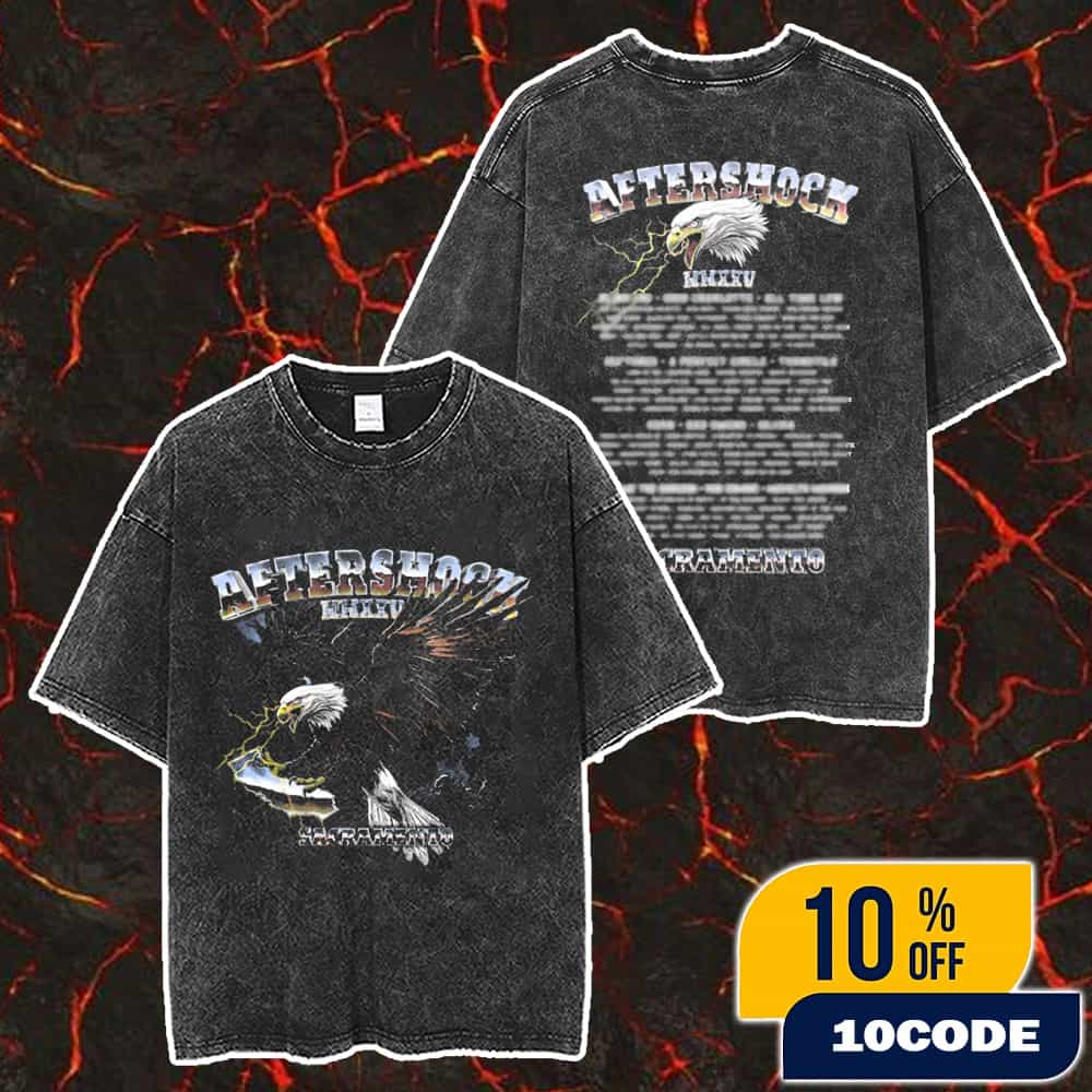 Aftershock Festival 2025 State Bird Version Tee Sacramento Discovery Park October 2-5 Eagle Artwork MMXXV Line Up Backprint Merch Unisex Two Sided Washed T-Shirt