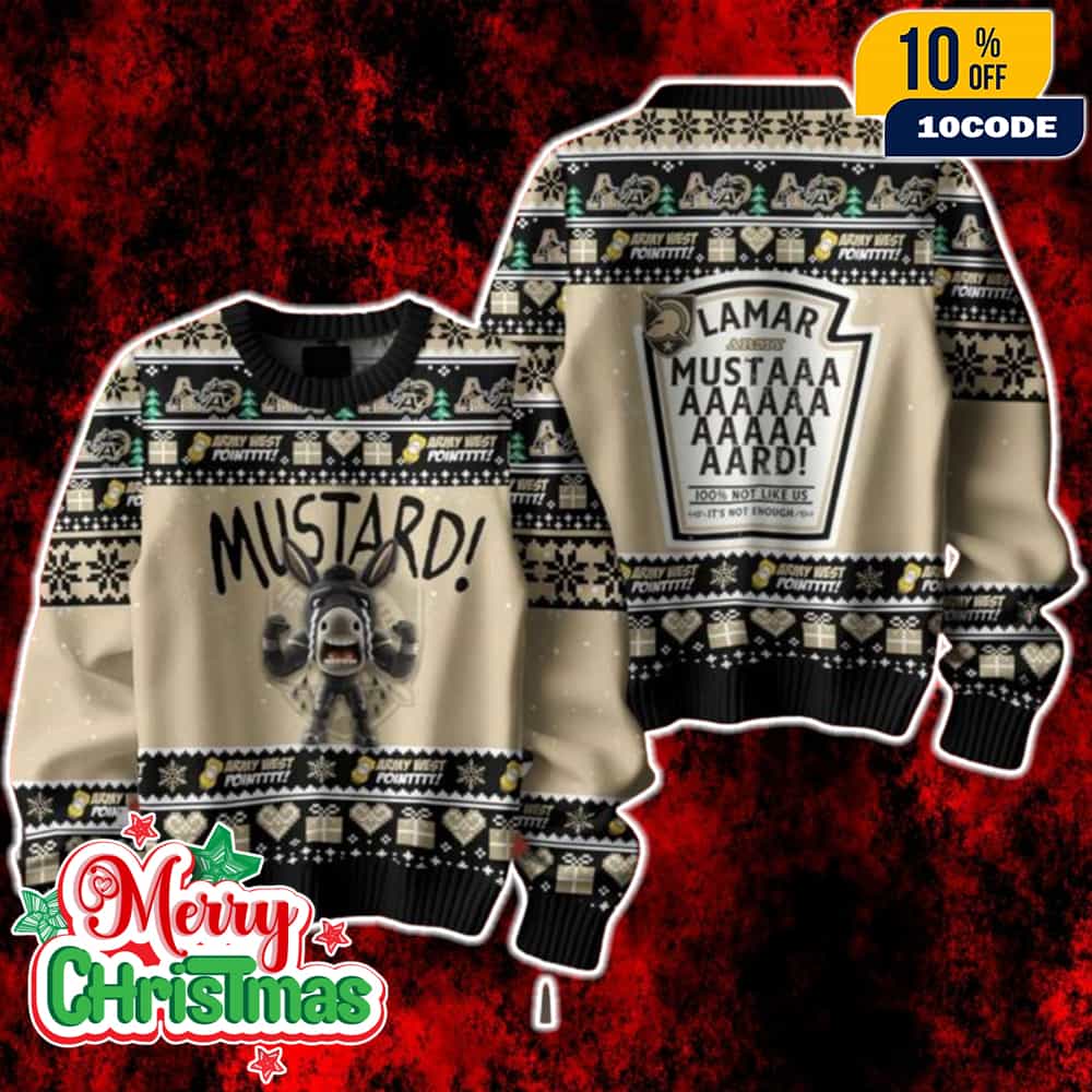 Army West Point Mustard Ugly Christmas Sweater Funny Holiday Knit Jumper Festive Xmas Gift
