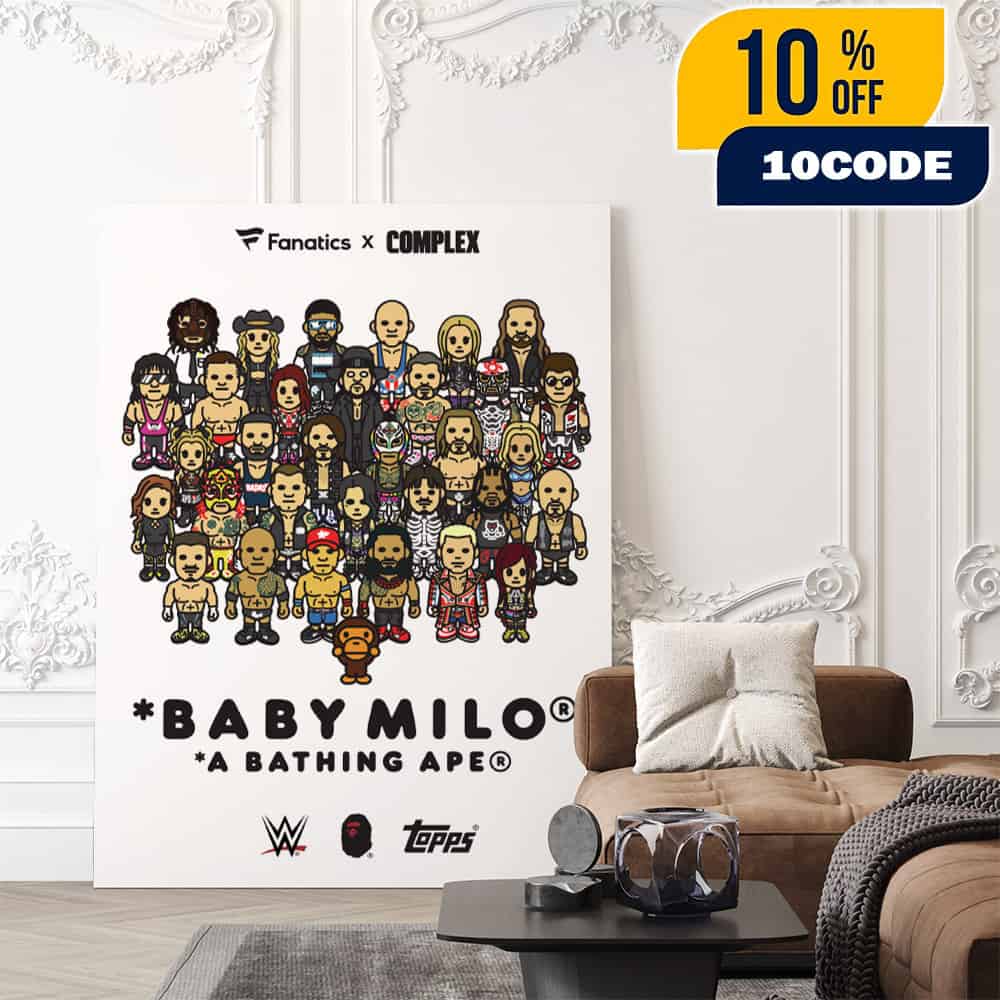 The BABY MILO A Bathing Ape Is Ready To Rumble WWE x BAPE x TOPPS x Complex Celebration Of WWE Survivor Series 2025 Poster Canvas Home Decor commemorates an unprecedented multi-brand collaboration announced by Complex in celebration of WWE Survivor Series: WarGames, the 39th annual Survivor Series scheduled for Saturday, November 29, 2025, at Petco Park in San Diego, California—marking the first Survivor Series event held in an outdoor stadium venue in the event’s storied history dating back to 1987. This premium canvas poster features BABY MILO, the iconic cartoon monkey mascot from Japanese streetwear giant A Bathing Ape (BAPE), in wrestling-inspired artwork celebrating the groundbreaking partnership between WWE, BAPE, TOPPS (the legendary trading card company), and Complex (the influential pop culture media brand), bringing together professional wrestling, high-end street fashion, collectible cards, and youth culture media in a crossover that bridges sports entertainment with streetwear’s biggest players. The poster artwork captures the collaboration’s celebration of Survivor Series: WarGames 2025’s massive card headlined by the biggest WarGames match in WWE history featuring Team Roman Reigns (Roman Reigns, CM Punk, Jey Uso, Cody Rhodes, and Brock Lesnar) facing Team Vision (Seth Rollins, Bron Breakker, Bronson Reed, Drew McIntyre, and Paul Heyman’s team) in a chaotic double steel cage elimination match, alongside the Women’s WarGames featuring Team Ripley (Rhea Ripley, Bianca Belair, Iyo Sky, and Charlotte Flair replacement TBA) against Team Kabuki Warriors (Asuka, Kairi Sane, Nia Jax, and Chelsea Green), plus John Cena’s final premium live event appearance defending the Intercontinental Championship against Dominik Mysterio in what marks The Leader of Cenation’s farewell to WWE PPV before his planned 2025 retirement tour. The collaborative design incorporates BAPE’s signature aesthetic elements including the brand’s iconic camo patterns, APE HEAD logo, and BABY MILO character merged with WWE imagery, representing an evolution of BAPE’s Fall/Winter 2025 “Connect with People” collection philosophy that emphasizes connection through fashion, creativity, and community by channeling music, sports, and art influences from the early 2000s with bold color palettes, graffiti-inspired graphics, and signature Tree Edge Camo, Art Camo, Cloud Camo patterns. BAPE, founded by NIGO (Tomoaki Nagao) in Tokyo’s Harajuku district in 1993, has become synonymous with Japanese streetwear excellence through collaborations with brands like adidas, Marvel, Star Wars, and now WWE, while TOPPS—founded in 1938 and now owned by sports merchandise giant Fanatics—brings its legendary trading card expertise that revolutionized sports collectibles with iconic releases like 1952 Mickey Mantle cards and 2000s WWE trading card sets, creating a natural synergy with Complex’s cultural curation (the media brand known for sneaker culture coverage, “Hot Ones” series, and youth culture journalism). This canvas home decor piece captures the historic moment when WWE Survivor Series: WarGames 2025 delivers the most stacked WarGames lineup ever at Petco Park’s 40,000+ capacity outdoor venue in San Diego, featuring legends like Brock Lesnar’s return after his hiatus, Roman Reigns’s continued dominance as The Tribal Chief, CM Punk’s World Heavyweight Championship reign following his AEW departure and WWE return, Cody Rhodes’s Undisputed WWE Universal Championship run after finishing his story by defeating Roman Reigns, and John Cena’s emotional final PPV appearance as he embarks on his farewell tour before permanent retirement—all commemorated through the unique lens of BABY MILO’s playful wrestling-ready character design that merges BAPE’s streetwear prestige with WWE’s sports entertainment legacy, TOPPS’s collectible culture, and Complex’s media influence in a collaboration that represents the convergence of fashion, wrestling, art, and pop culture for the 2025 generation.