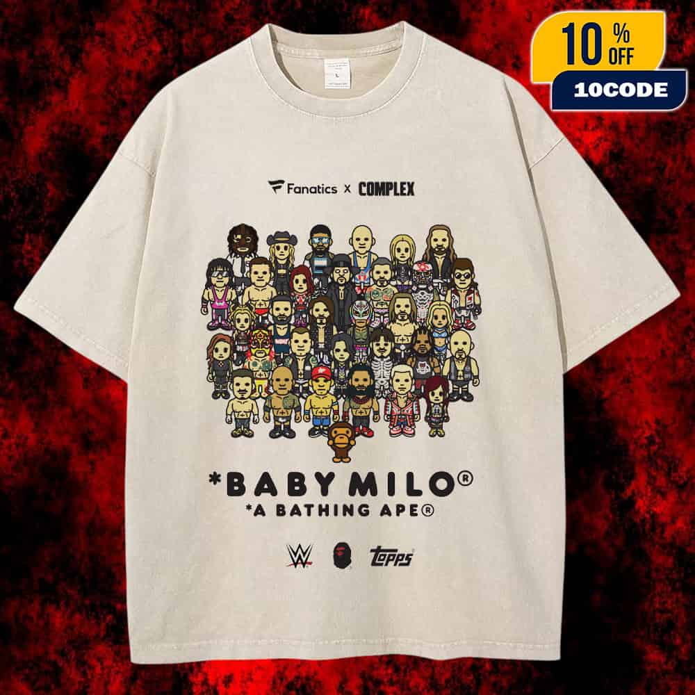 The BABY MILO A Bathing Ape Is Ready To Rumble WWE x BAPE x TOPPS x Complex Celebration Of WWE Survivor Series 2025 Unisex Washed T-Shirt commemorates an unprecedented multi-brand collaboration announced by Complex in celebration of WWE Survivor Series: WarGames, the 39th annual Survivor Series scheduled for Saturday, November 29, 2025, at Petco Park in San Diego, California—marking the first Survivor Series event held in an outdoor stadium venue in the event’s storied history dating back to 1987. This premium washed t-shirt features BABY MILO, the iconic cartoon monkey mascot from Japanese streetwear giant A Bathing Ape (BAPE), in wrestling-inspired artwork celebrating the groundbreaking partnership between WWE, BAPE, TOPPS (the legendary trading card company), and Complex (the influential pop culture media brand), bringing together professional wrestling, high-end street fashion, collectible cards, and youth culture media in a crossover that bridges sports entertainment with streetwear’s biggest players. The collaboration celebrates Survivor Series: WarGames 2025’s massive card headlined by the biggest WarGames match in WWE history featuring Team Roman Reigns (Roman Reigns, CM Punk, Jey Uso, Cody Rhodes, and Brock Lesnar) facing Team Vision (Seth Rollins, Bron Breakker, Bronson Reed, Drew McIntyre, and Paul Heyman’s team) in a chaotic double steel cage elimination match, alongside the Women’s WarGames featuring Team Ripley (Rhea Ripley, Bianca Belair, Iyo Sky, and Charlotte Flair replacement TBA) against Team Kabuki Warriors (Asuka, Kairi Sane, Nia Jax, and Chelsea Green), plus John Cena’s final premium live event appearance defending the Intercontinental Championship against Dominik Mysterio in what marks The Leader of Cenation’s farewell to WWE PPV before his planned 2025 retirement tour. The collaboration features exclusive apparel designed by BAPE incorporating the Japanese brand’s signature camo patterns, APE HEAD logo, and BABY MILO character merged with WWE imagery, plus limited-edition TOPPS trading cards produced through Fanatics that blend collectible card culture with streetwear aesthetics—a natural evolution of BAPE’s Fall/Winter 2025 “Connect with People” collection philosophy that emphasizes connection through fashion, creativity, and community by channeling music, sports, and art influences from the early 2000s with bold color palettes, graffiti-inspired graphics, and signature Tree Edge Camo, Art Camo, Cloud Camo patterns. BAPE, founded by NIGO (Tomoaki Nagao) in Tokyo’s Harajuku district in 1993, has become synonymous with Japanese streetwear excellence through collaborations with brands like adidas, Marvel, Star Wars, and now WWE, while TOPPS—founded in 1938 and now owned by sports merchandise giant Fanatics—brings its legendary trading card expertise that revolutionized sports collectibles with iconic releases like 1952 Mickey Mantle cards and 2000s WWE trading card sets. The vintage washed treatment creates an authentic worn-in aesthetic that reflects both streetwear’s distressed fashion trends and WWE’s lived-in history as the world’s largest professional wrestling promotion, offering fans wearable celebration of a historic collaboration that unites Complex’s cultural curation (the media brand known for sneaker culture coverage and “Hot Ones” series) with BAPE’s streetwear prestige, TOPPS’s collectible card legacy, and WWE’s sports entertainment dominance during Survivor Series: WarGames 2025—an event that promises to deliver the most stacked WarGames lineup ever featuring legends like Brock Lesnar’s return, Roman Reigns’s continued dominance, CM Punk’s World Heavyweight Championship reign, Cody Rhodes’s Undisputed WWE Universal Championship run, and John Cena’s emotional final PPV appearance.