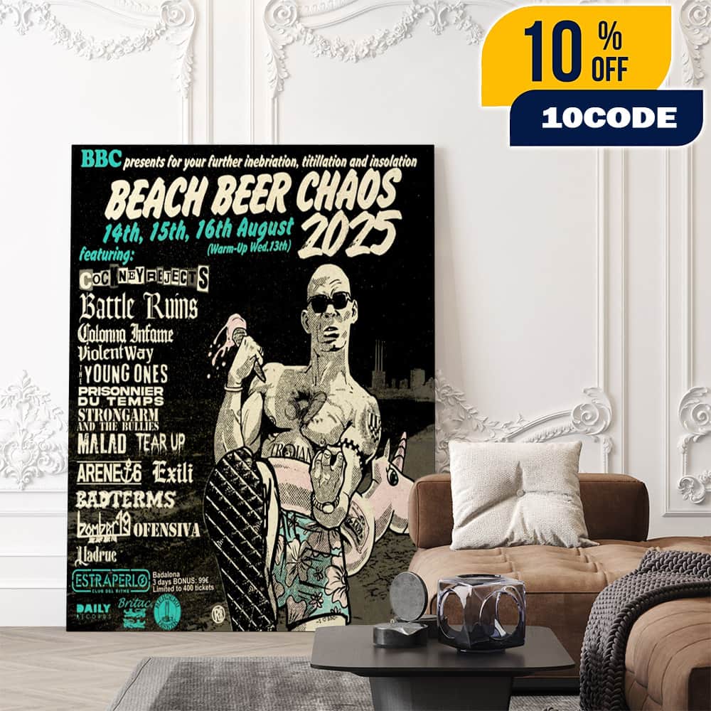 Beach Beer Chaos 2025 Poster Lineup Artwork August 14-15-16 2025 At Estraperlo Club Del Ritme Badalona Spain Poster Canvas Home Decor