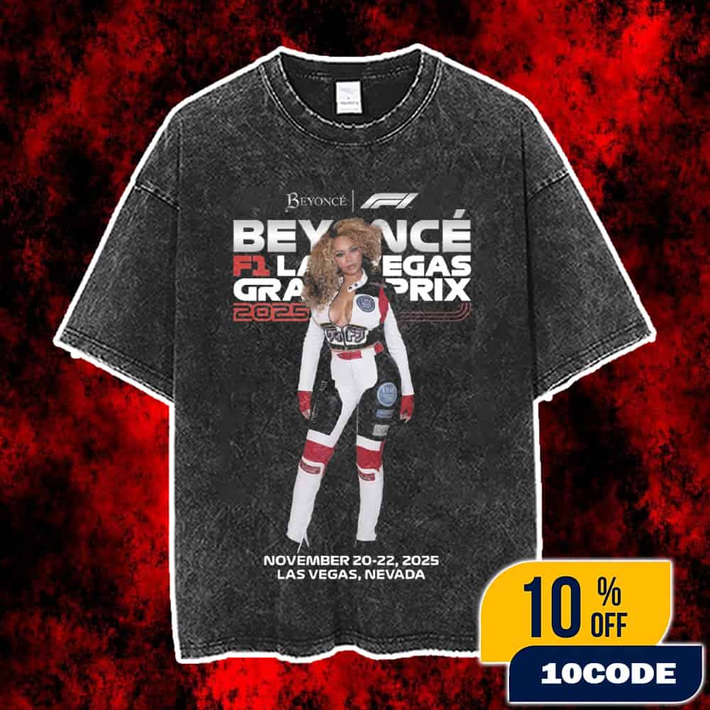 The Beyonce Louis Vuitton Custom Racing Suit White Red Black Leather Plunging Neckline Red Gloves Black Boots F1 Las Vegas Grand Prix 2025 Vintage Washed Unisex T-Shirt features an iconic moment from the 2025 Formula 1 Las Vegas Grand Prix, hosted at the Las Vegas Strip Circuit in Nevada, USA, on November 22. This standout event saw Beyoncé showcase a luxury motorsport look in a bold, custom Louis Vuitton leather racing suit — highlighted by its dramatic plunging neckline, signature LV logos, color-blocked white, red, and black leather, eye-catching red gloves, and sleek black boots. The electrifying Grand Prix, one of the sport’s most anticipated races, drew global attention for its glamorous celebrity guests, championship competitors like Max Verstappen and Lewis Hamilton, and a festival-style atmosphere on the Strip. This vintage washed merch immortalizes Beyoncé’s fusion of high-fashion and racing culture, making it an essential piece for F1 fans, music lovers, and collectors seeking wearable memories from a landmark entertainment-sport crossover event in Las Vegas.