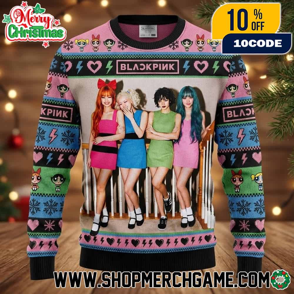 The BLACKPINK x Powerpuff Girls Ugly Christmas Sweater is a limited edition knitted holiday jumper that fuses the global K Pop girl group BLACKPINK with Cartoon Network’s iconic Powerpuff Girls, making it a standout piece of festive winter apparel for fans of both franchises. Featuring a classic Fair Isle pattern reimagined with colorful cartoon motifs inspired by Blossom, Bubbles, and Buttercup alongside playful K Pop styling, this cozy pullover is designed for holiday parties, Christmas concerts, and winter streetwear looks. The combination of bright character artwork, seasonal colors, and soft knit fabric turns the sweater into a collectible item that appeals to BLINKs and nostalgic Powerpuff Girls viewers who want a fun, conversation starting ugly Christmas sweater to show off their fandom during the holiday season.