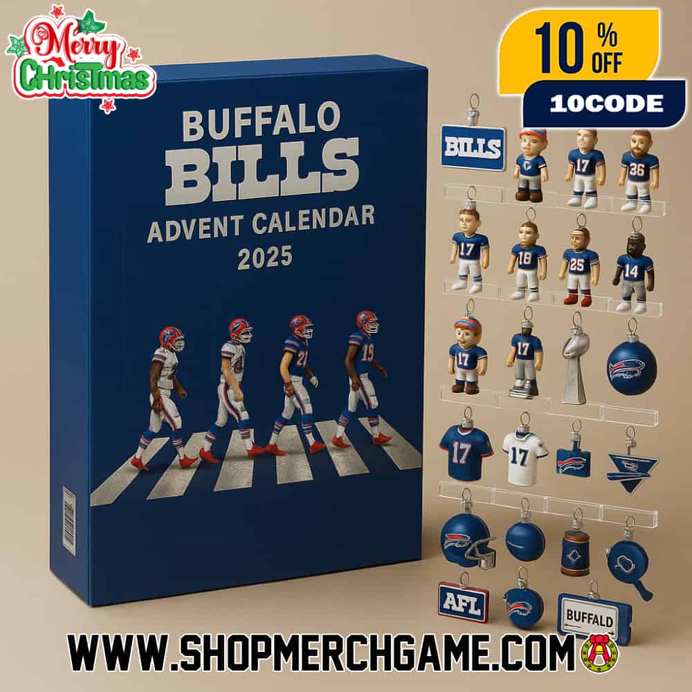 This Buffalo Bills Advent Calendar Ornament 2025 serves as the ultimate collectible holiday countdown gift set for NFL fans celebrating the franchise’s quest for their first-ever Super Bowl championship, featuring 24 days of mini figurines and Christmas decorations honoring over 60 years of Bills history since their founding in 1960. The memorabilia collection arrives during an exceptional 2025 season where the Bills, led by star quarterback Josh Allen at Highmark Stadium in Orchard Park, New York, currently hold a 6-2 record, sitting atop the AFC East division and emerging as legitimate Super Bowl LX contenders with +550 odds (15.4% championship probability), their best positioning in years as they aim to break a championship drought that dates back to four consecutive Super Bowl losses from 1990-1993. This advent calendar features collectible ornaments celebrating Josh Allen’s remarkable 2025 campaign where he has thrown 13 touchdown passes with 1,833 passing yards and added 7 rushing touchdowns, alongside legendary Bills icons including Jim Kelly, Thurman Thomas, Andre Reed, and Bruce Smith who defined the franchise’s glory years. The 24-day countdown includes exclusive Funko-style mini figurines showcasing iconic Bills moments, team helmet ornaments in the signature red, white, and royal blue colors, jersey replicas, and commemorative pieces honoring the passionate “Bills Mafia” fan base that has stood by the team through decades of playoff heartbreak. Available through official Bills merchandise retailers and specialty NFL collectible stores, this NFL memorabilia advent calendar offers daily surprises throughout December, combining holiday tradition with Bills fandom during a season where the team is considered one of seven Super Bowl favorites at the midseason point, with analysts predicting Josh Allen could finally deliver Buffalo’s first Lombardi Trophy despite the continued obstacle posed by the defending champion Kansas City Chiefs in the AFC playoff picture.