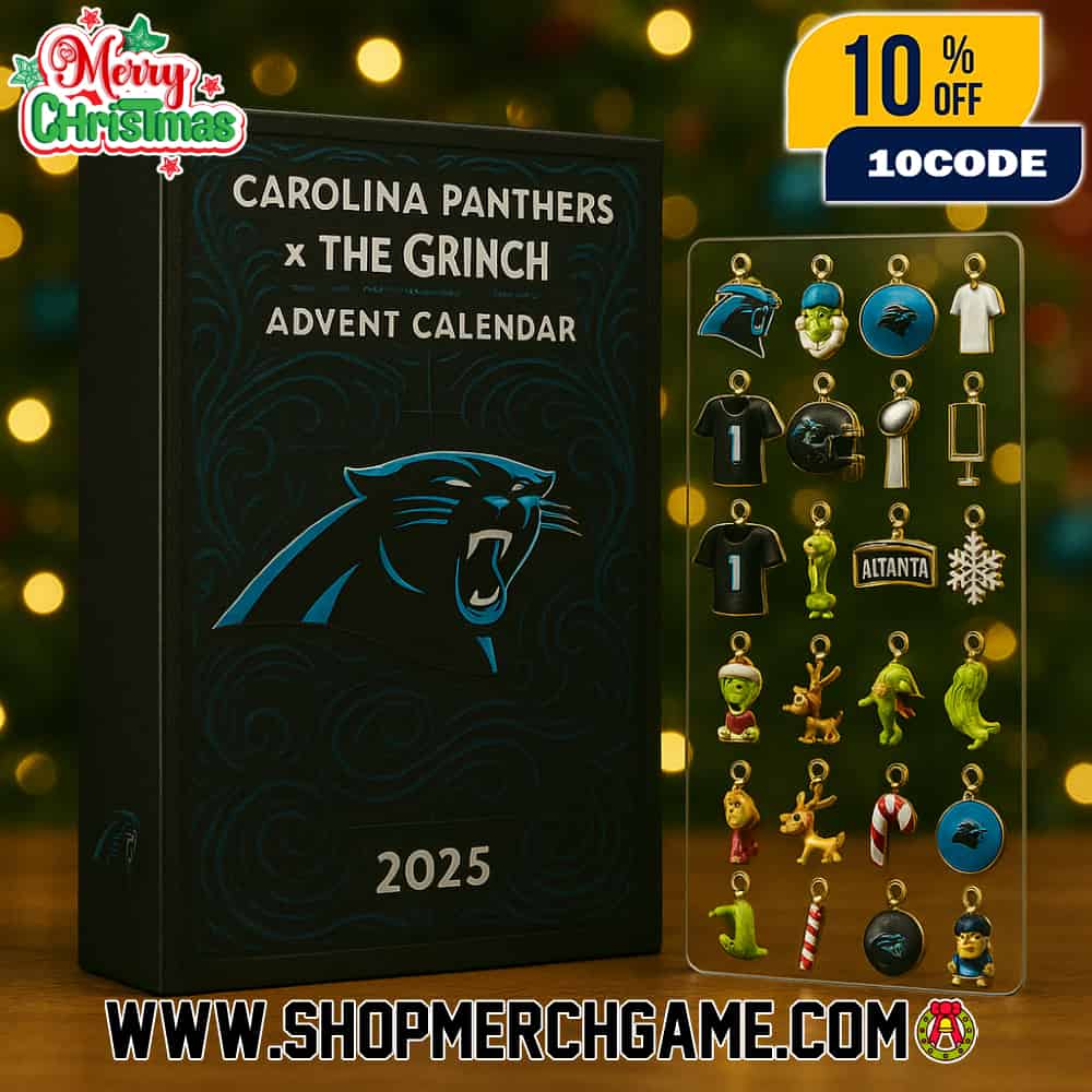 Carolina Panthers x The Grinch Advent Calendar 2025 Ornament Set 24 Day Holiday Countdown NFL Christmas Collectible Decorations Limited Edition