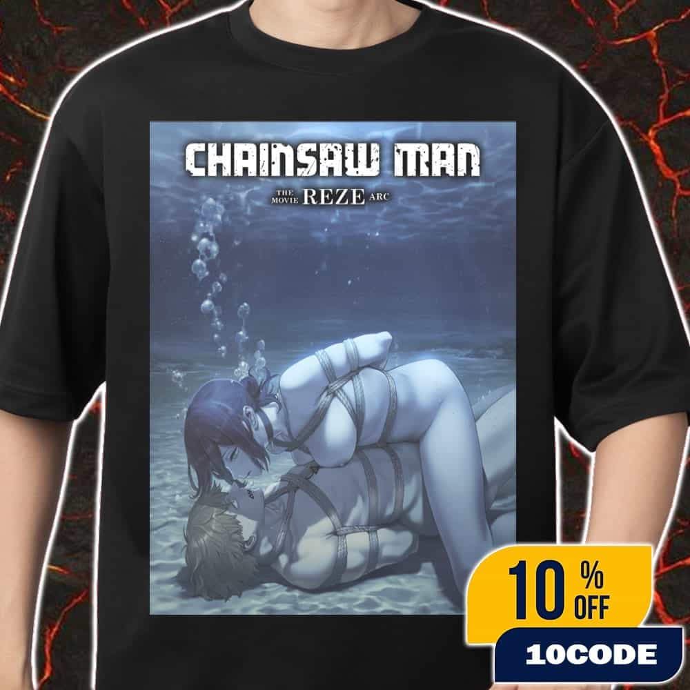 Chainsaw Man The Movie Reze Arc Denji x Reze Bondage BDSM Style Art Sexy Version Merch Unisex T-Shirt celebrates one of the most emotionally charged arcs from the hit anime franchise, now immortalized in the theatrical film released in Japan on September 19, 2025, and arriving in US theaters on October 24, 2025, distributed by Crunchyroll. This exclusive merchandise captures the complex relationship between protagonist Denji and the mysterious café worker Reze, who becomes his first genuine romantic interest after his heartbreaking experiences with Makima. The Reze Arc follows Denji as he encounters Reze during a sudden storm, taking shelter in a phone booth before their relationship blossoms through intimate moments including a memorable scene where she teaches him to swim in a school’s outdoor pool at night. However, beneath this tender romance lies a darker truth—Reze is actually the Bomb Hybrid, sent on a mission to retrieve Denji’s Chainsaw heart, creating a tragic love story that resonates deeply with fans. Directed by Tatsuya Yoshihara with screenplay by Hiroshi Seko and produced by MAPPA studio, the film continues the story from Season 1 where Denji transformed into Chainsaw Man after fusing with his beloved chainsaw-powered devil-dog Pochita. The bondage BDSM-style artistic interpretation on this unisex t-shirt represents the passionate yet dangerous dynamic between these two characters, reflecting themes of manipulation, genuine connection, and the complexities of love in a brutal world where devils and hunters wage war. This premium merchandise appeals to collectors and fans who appreciate the mature, emotionally nuanced storytelling that made Chainsaw Man a cultural phenomenon since its 2022 Crunchyroll debut, with the Reze Arc specifically exploring Denji’s vulnerability and his desperate search for authentic relationships beyond his identity as Chainsaw Man. The film opened to strong box office performance with $2.8 million on its first day in Japan, demonstrating the enduring popularity of this darker, more mature anime series. Perfect for anime enthusiasts attending theatrical screenings or fans seeking exclusive character-focused apparel, this t-shirt commemorates a pivotal narrative arc that sets up Denji’s emotional journey and his understanding that he wants to be loved for who he is, not just for being Chainsaw Man.