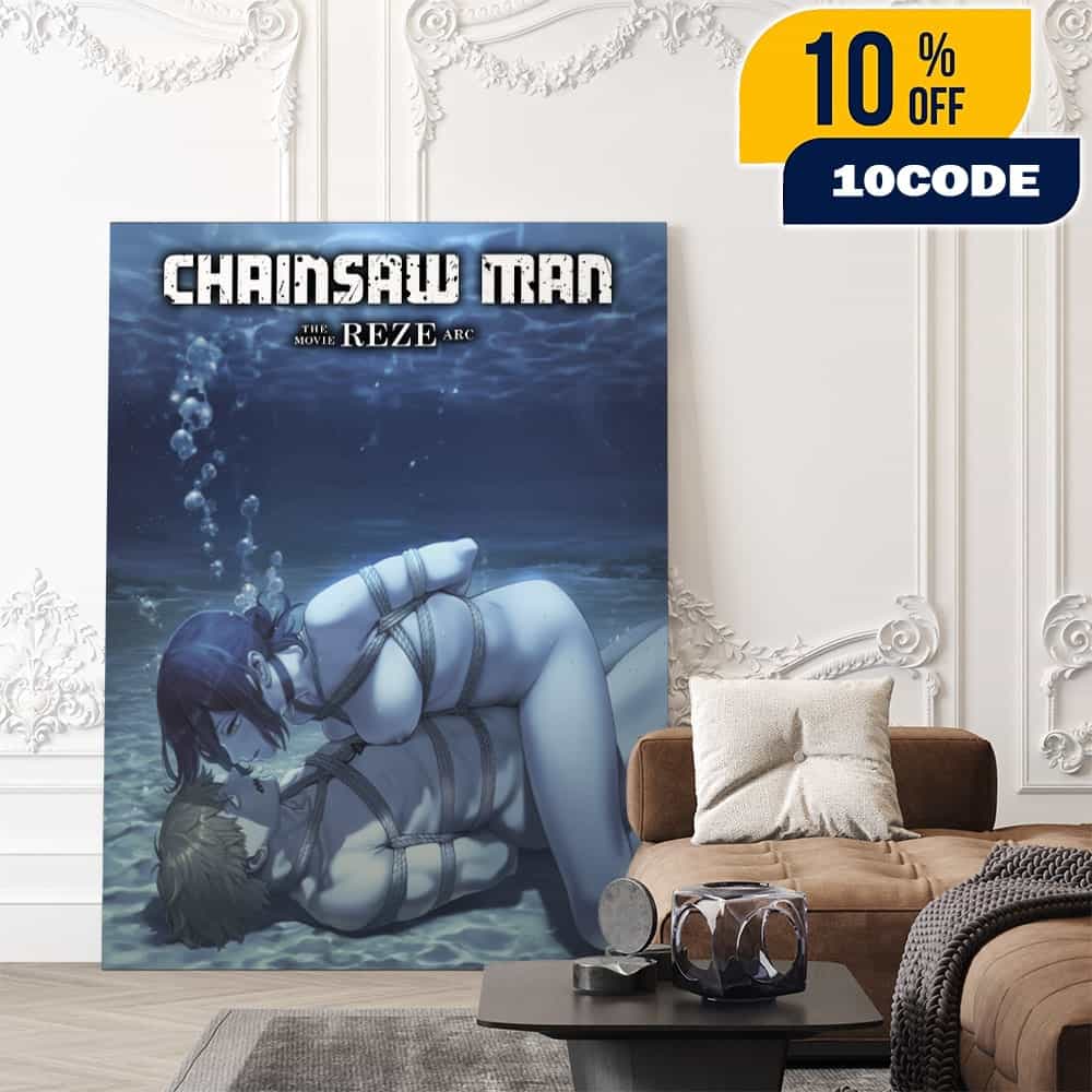 The Chainsaw Man The Movie Reze Arc Denji x Reze Bondage BDSM Style Art Sexy Version Poster Canvas captures the intense and emotionally charged relationship between protagonist Denji and the enigmatic Reze from the highly anticipated theatrical adaptation covering the Bomb Girl Arc, which premiered in Japan on September 19, 2025, and was released in the United States and United Kingdom on October 29, 2025. This premium canvas poster features provocative fan art depicting the complex dynamic between devil-human hybrid Denji, also known as Chainsaw Man, and Reze, the Soviet Union’s Bomb Devil hybrid who was originally sent on a mission to steal Denji’s Chainsaw heart but developed genuine romantic feelings for him during their encounters at a café and a school swimming pool. The Reze Arc, produced by renowned animation studio MAPPA with director Tatsuya Yoshihara and scriptwriter Hiroshi Seko, continues directly after the events of the 2022 anime series first season and explores one of the most emotionally devastating storylines in Tatsuki Fujimoto’s manga, where Reze’s traumatic childhood and experience as a Devil hybrid give her deep common ground with Denji, creating an authentic connection that transcends her initial mission. This stylized artwork interpretation reflects the arc’s mature themes of manipulation, genuine affection, and tragic romance that culminates in Reze’s fateful decision to meet Denji at the café before being intercepted by Makima, leaving Denji heartbroken and waiting with flowers that never reach their intended recipient. The high-quality canvas material ensures durability and vivid color reproduction, making this collectible merchandise an essential piece for fans of the Chainsaw Man franchise that has exceeded 30 million copies in circulation and was distributed in over 200 countries following its 2022 anime debut. Official Chainsaw Man Reze Arc commemorative merchandise featuring original illustrations became available at Animate stores and through various retailers including exclusive collections at New York Comic Con ahead of the theatrical release.