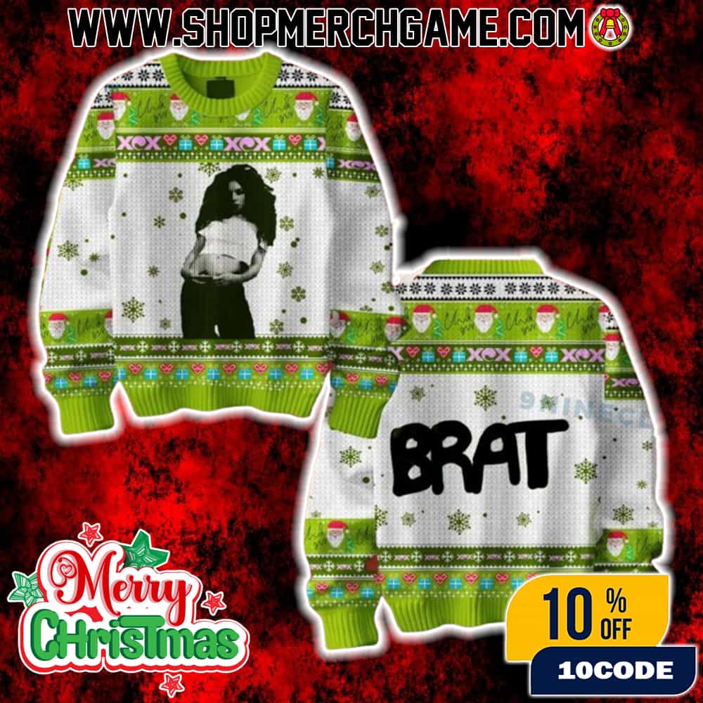 This official Charli XCX “Brat” ugly Christmas sweater celebrates the cultural phenomenon surrounding her critically acclaimed sixth studio album “Brat” (2024), which became the highest-rated album of 2024 according to Metacritic and swept the music industry with nine Grammy nominations including Album of the Year, winning three awards including Best Dance/Electronic Album at the 67th Grammy ceremony in February 2025. This neon green holiday knit festive merchandise captures the iconic “brat green” aesthetic that became a global internet trend and was even adopted by Vice President Kamala Harris’s 2024 presidential campaign, featuring the signature minimalist design that helped propel the album to number one in the UK, Australia, and Ireland while reaching number three on the Billboard 200 – Charli’s highest US chart position ever. The Christmas sweater coincides with the massive success of Charli XCX’s “Sweat” tour with Troye Sivan, which sold out arenas across North America from September-October 2024 including iconic venues like Madison Square Garden, United Center Chicago, and Kia Forum Los Angeles, with an exclusive European date at Primavera Sound Barcelona on June 5, 2025. This premium holiday merchandise, priced competitively with official Charli XCX merchandise ranging from $25-40 USD, celebrates an album that achieved unprecedented critical and commercial success with over 300,000 units sold in the UK earning platinum certification, while tracks like “360,” “Apple,” “Von Dutch,” and “Guess” featuring Billie Eilish dominated charts and social media with viral TikTok dances and memes. The ugly Christmas sweater represents the perfect fusion of holiday tradition with pop culture relevance, appealing to fans of the artist who transformed 2024 into “Brat Summer” through her brutally honest, club-influenced sound that drew from 2000s English rave culture while maintaining her status as one of the most innovative pop artists of her generation, making this festive music merch an ideal gift for anyone who wants to embody the rebellious, authentic spirit that made “Brat” one of the most influential albums in recent memory.