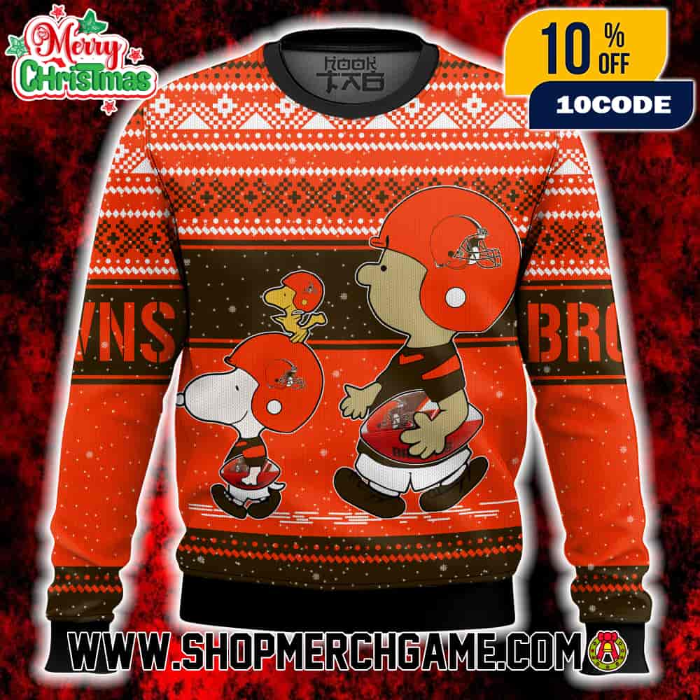 The Cleveland Browns Snoopy Charlie Brown Ugly Christmas Sweater features the beloved Peanuts characters adorned in Fair Isle patterns with snowflakes, showcasing the Browns’ iconic orange and brown team colors that were adopted in 1946 when founder Paul Brown discovered Bowling Green State University as the team’s training camp site and fell in love with the school’s orange and brown color scheme. This officially licensed holiday knit sweater celebrates the storied Cleveland franchise that currently holds a 2-6 record in the competitive AFC North division as they navigate a challenging 2025 season, with crucial upcoming home games including matchups against the Baltimore Ravens on November 16th, the San Francisco 49ers on November 30th, the Tennessee Titans on December 7th, and a pivotal division showdown hosting the Pittsburgh Steelers on December 28th at Huntington Bank Field. As part of the official Peanuts x NFL collaboration, this festive sweater merges Charles M. Schulz’s timeless comic strip characters with the Browns’ rich championship legacy that includes eight total franchise championships—four AAFC titles from 1946-1949 and four NFL Championships (1950, 1954, 1955, and most memorably in 1964 when Jim Brown rushed for 114 yards and Frank Ryan threw three touchdown passes to Gary Collins in a stunning 27-0 shutout victory over the heavily favored Baltimore Colts at Cleveland Municipal Stadium). The Fair Isle knitting pattern with traditional Nordic snowflake motifs creates a festive winter aesthetic perfect for Browns supporters who remain loyal through challenging seasons, honoring a franchise that remains one of only four NFL teams never to have played in a Super Bowl but maintains one of the most passionate fanbases in professional sports. Designed as a festive winter pullover for both men and women, this sweater is ideal for attending games at Huntington Bank Field in Cleveland, hosting holiday watch parties, or gifting to dedicated Browns fans who continue to support their team’s quest to return to championship glory and finally reach their first Super Bowl appearance in franchise history.
