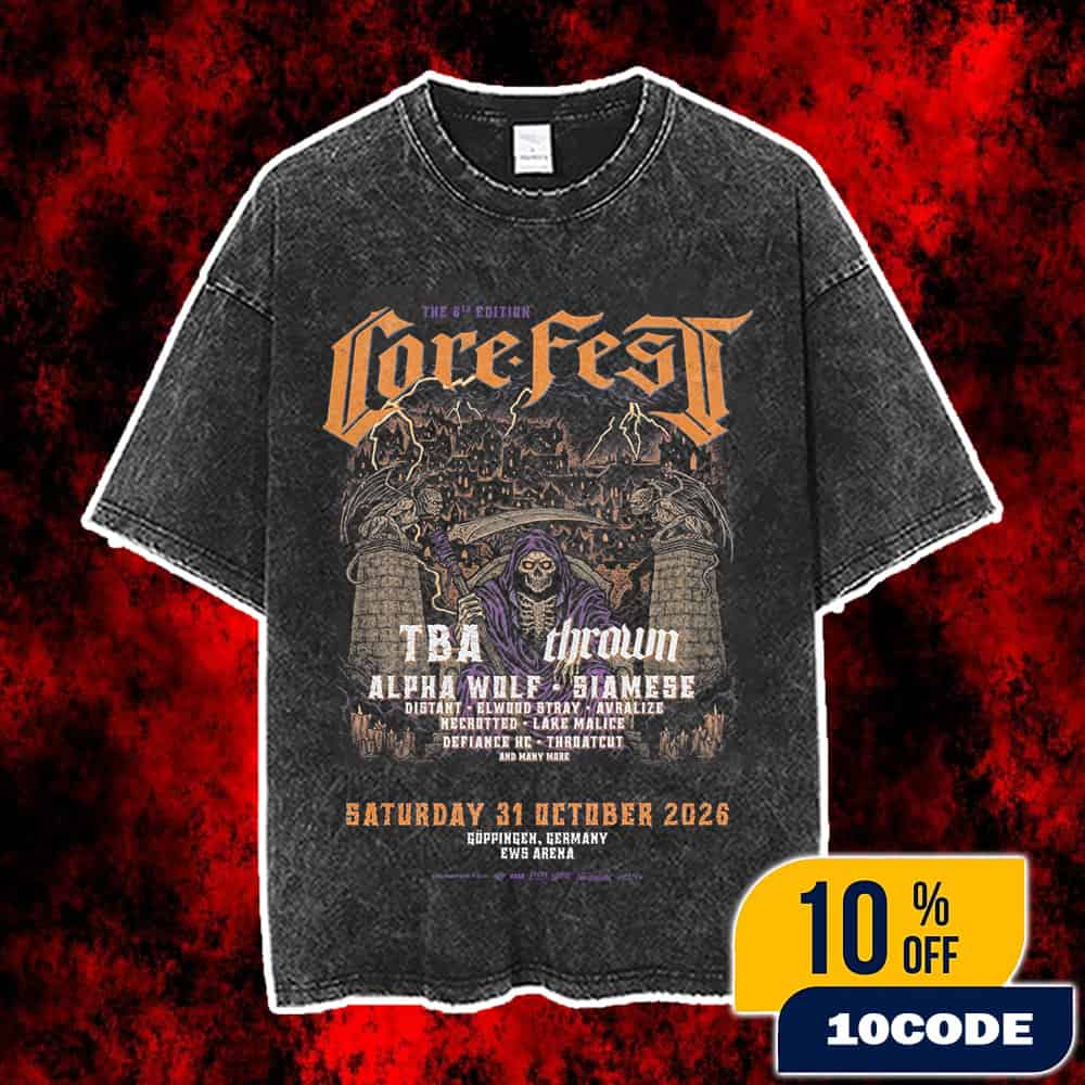 Core Fest 2026 Halloween Metal Festival Goppingen Germany EWS Arena Alpha Wolf Siamese Thrown Distant Avralize Defiance HC Lake Malice Elwood Stray Necrotted Washed T-Shirt