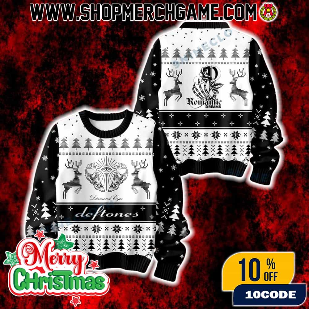 This Deftones “Diamond Eyes Romantic Dreams” ugly Christmas sweater holiday knit pullover celebrates the Sacramento alternative metal band’s milestone 15th anniversary of their critically acclaimed sixth studio album “Diamond Eyes” (2010), which marked their triumphant return following original bassist Chi Cheng’s tragic car accident and featured new bassist Sergio Vega in what became the band’s highest charting album since their 2003 self-titled release. This festive band merchandise combines the ethereal beauty of “Romantic Dreams,” a haunting track from their 2012 follow-up album “Koi No Yokan” that showcases Chino Moreno’s hypnotic vocals over atmospheric soundscapes, with holiday charm through premium knit construction that mirrors the band’s ability to blend heavy aggression with delicate beauty. The ugly Christmas sweater pays homage to “Diamond Eyes,” an album that was hailed as “Rock Album of the Year” by iTunes and ranked as the 4th best metal album of the 2010s by MetalSucks, featuring iconic tracks like “Diamond Eyes,” “Rocket Skates,” “Sextape,” and “You’ve Seen the Butcher” that defined a new era for the band following their experimental period. With Deftones currently celebrating multiple album anniversaries during their 2025 tour, including the 15th anniversary of “Diamond Eyes” at festivals like Louder Than Life, and having recently released their tenth studio album “Private Music” in August 2025, this holiday pullover represents the perfect intersection of nostalgia and contemporary relevance for fans of the band’s 30-year evolution. The sweater’s design captures the essence of Deftones’ signature sound that has sold millions of albums worldwide, making it an ideal collectible for fans who appreciate the band’s unique ability to create atmospheric metal that ranges from crushing heaviness to dreamlike beauty, perfectly embodied in the romantic yet powerful themes that define both “Diamond Eyes” and “Romantic Dreams”.
