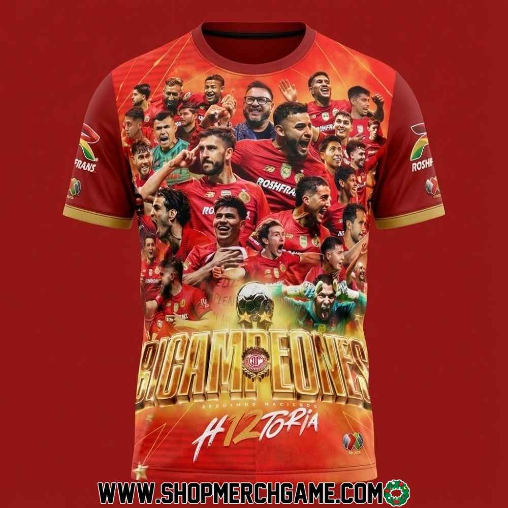 This unisex 3D t-shirt celebrates Deportivo Toluca F.C., known as the Diablos Rojos (Red Devils), as Liga MX Apertura 2025 champions following their dramatic penalty shootout victory over Tigres UANL on December 14, 2025, at Estadio Nemesio Díez, marking the club’s historic 12th Liga MX championship and their unprecedented achievement as bicampeones with back-to-back titles in consecutive tournaments. After finishing first in the Apertura 2025 regular season under coach Antonio Mohamed, Toluca navigated a grueling playoff run that included quarterfinal and semifinal victories before facing Tigres in a two-leg final that ended 2-2 on aggregate—Tigres won the first leg 1-0 in Monterrey on December 12 with an Ángel Correa goal, but Toluca responded in the home leg with goals from Brazilian winger Helinho in the 41st minute and Portuguese striker Paulinho in the 52nd minute to overcome Fernando Gorriarán’s 12th-minute strike for Tigres, ultimately prevailing 9-8 in a marathon 12-round penalty shootout when substitute Alexis Vega, who entered in the 80th minute despite injury concerns, converted the decisive penalty after Correa’s miss. This championship represents Toluca’s fifth consecutive-title achievement since the Liga MX format began in 1996, making them only the fifth club in nearly three decades to accomplish this feat, and it caps a remarkable 2025 calendar year in which the Red Devils also claimed the Campeón de Campeones trophy with a 3-1 victory over Club América and the Campeones Cup by defeating LA Galaxy 3-2 in extra time on October 2, 2025, with Federico Pereira scoring the winner—a triple-crown triumph that solidifies Toluca’s status among Mexico’s most decorated football institutions with 12 Liga MX titles, 2 Copa MX championships, and 5 Campeón de Campeones trophies in their storied history dating back to their founding in 1917.