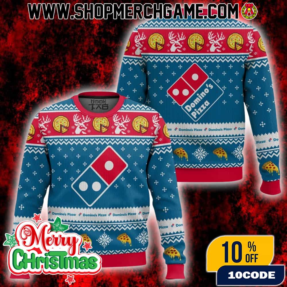 Domino’s Pizza Ugly Christmas Sweater Knitted Holiday Party Pullover With Pizza Slice Reindeer Snowflake Design For Men Women