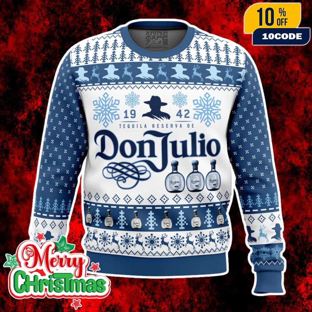 Don Julio Tequila Ugly Christmas Sweater Blue Snowflake Funny Holiday Drinking Knit Pullover Unisex Jumper