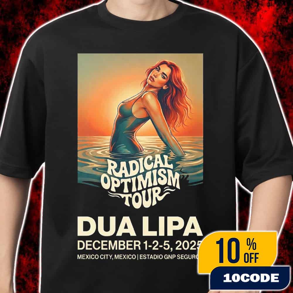The Dua Lipa Radical Optimism Tour Mexico City December 1-2-5 2025 Estadio GNP Seguros Three Concert Dates Sunset Swimsuit Water Art Merch Unisex T-Shirt celebrates Dua Lipa’s unprecedented triple show run at Estadio GNP Seguros in Mexico City on December 1, 2, and 5, 2025, marking the final and largest venue of her Radical Optimism World Tour Latin America leg. Each performance is highlighted by Dua Lipa’s electrifying stage visuals and live renditions of her biggest hits from the Radical Optimism album, attracting tens of thousands of pop music fans from across Mexico and neighboring countries. The official unisex t-shirt features vibrant sunset artwork and swimsuit-inspired imagery from the tour, available at the concert and online, serving as a premium, collectible piece for event attendees and global collectors. Tickets for all Mexico City dates are among the most sought-after of the tour, with popular seating options, VIP packages, and instant digital delivery enhancing the fan experience. This merchandise delivers authentic event details, hyper-local appeal, and genuine value for fans seeking to capture the energy of Dua Lipa’s final Radical Optimism Tour performances in one of Latin America’s most iconic stadiums.