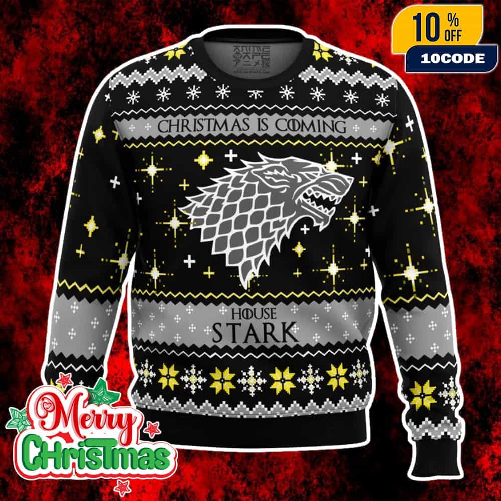 Game Of Thrones House Stark Ugly Christmas Sweater Winterfell Direwolf Knit Pullover Holiday Jumper