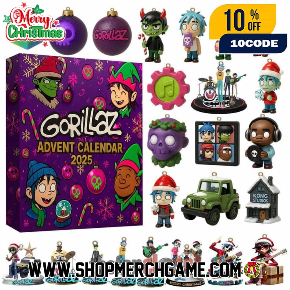 Gorillaz Advent Calendar 2025 With 24 Collectible Ornaments Virtual Band 2-D Murdoc Noodle Russel Kong Studios Geep Christmas Holiday Countdown Gift For Music Fans