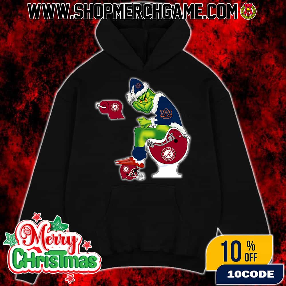 Grinch Christmas Hoodie Black Auburn Tigers Sitting On Toilet Alabama Crimson Tide Holiday Sweatshirt Funny College Football NCAA