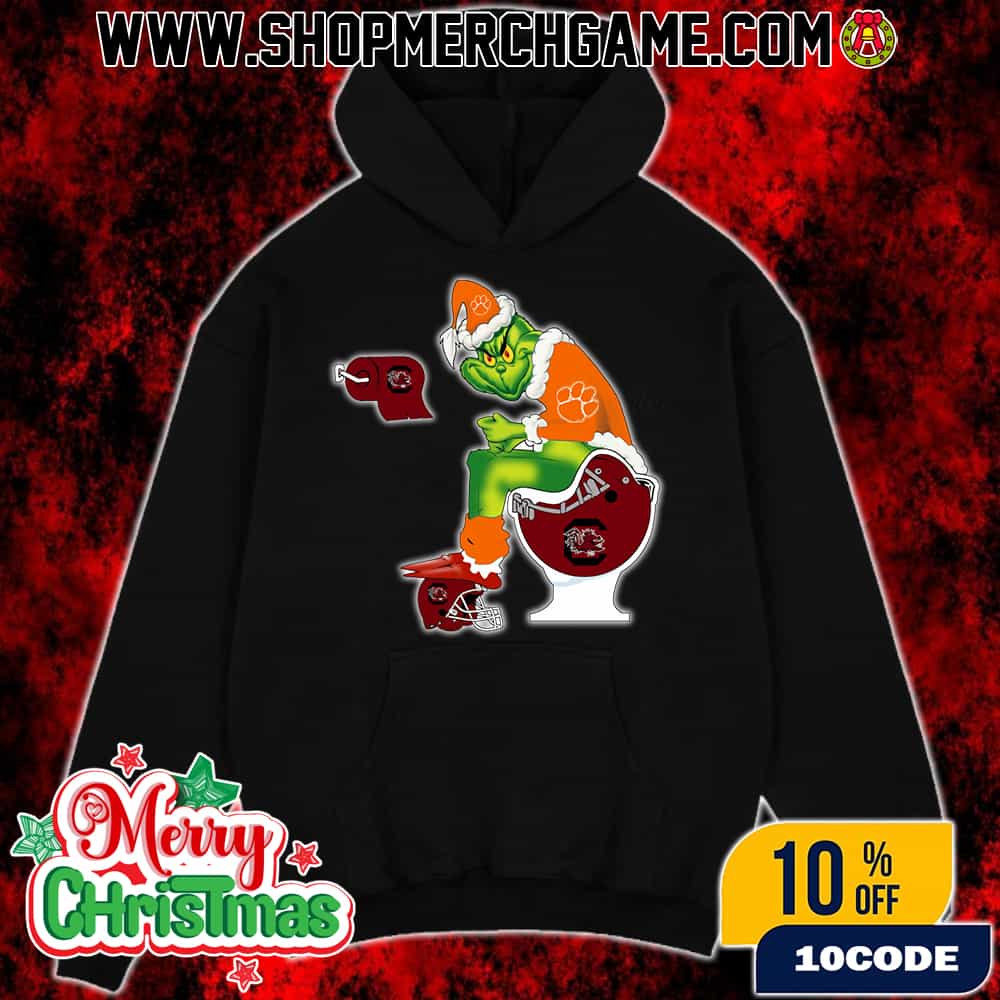 Grinch Christmas Hoodie Black Clemson Tigers Sitting On Toilet South Carolina Gamecocks Holiday Sweatshirt Funny College Football NCAA