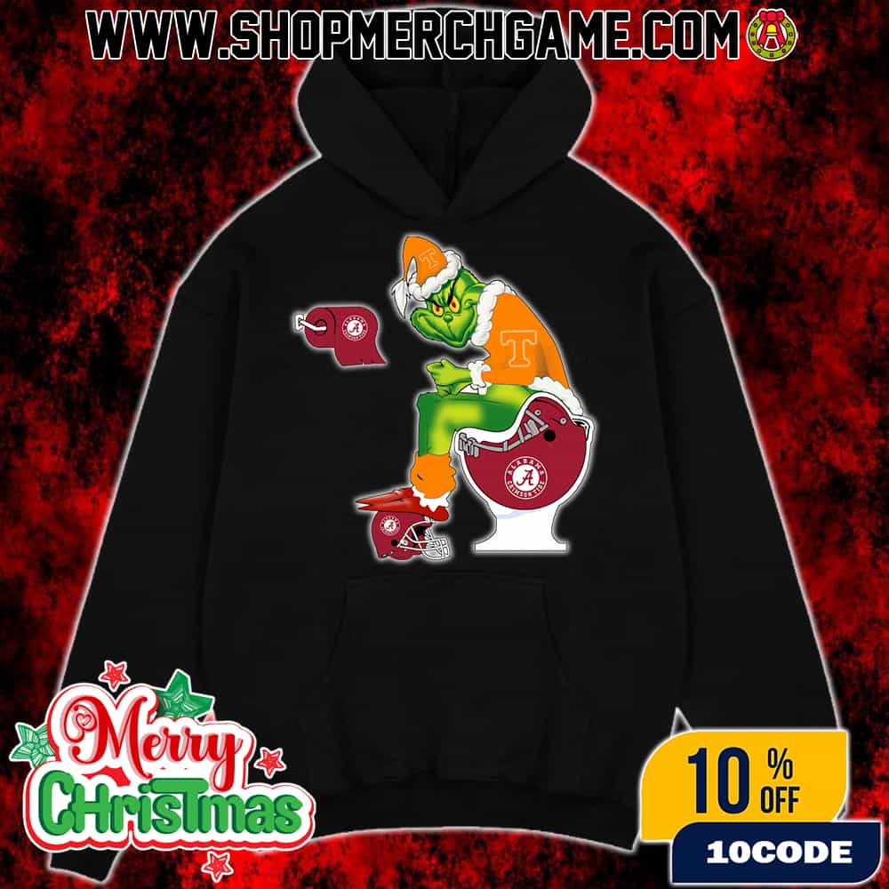 Grinch Christmas Hoodie Black Tennessee Volunteers Sitting On Toilet Alabama Crimson Tide Holiday Sweatshirt Funny College Football NCAA