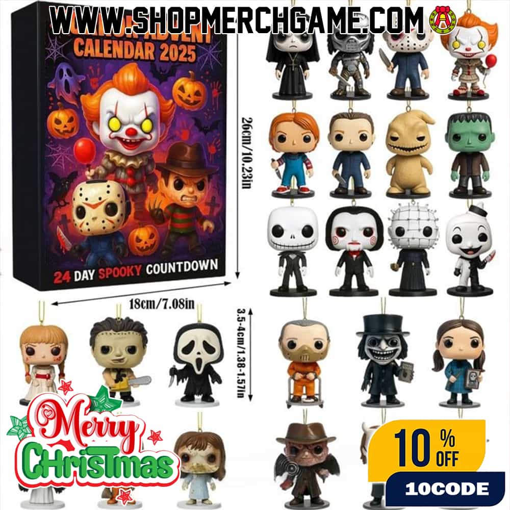 Horror Movie Advent Calendar 2025 24 Day Spooky Countdown With Pennywise Freddy Krueger Jason Voorhees Michael Myers Funko Pop Figures Halloween Christmas Collectibles Gift For Horror Fans