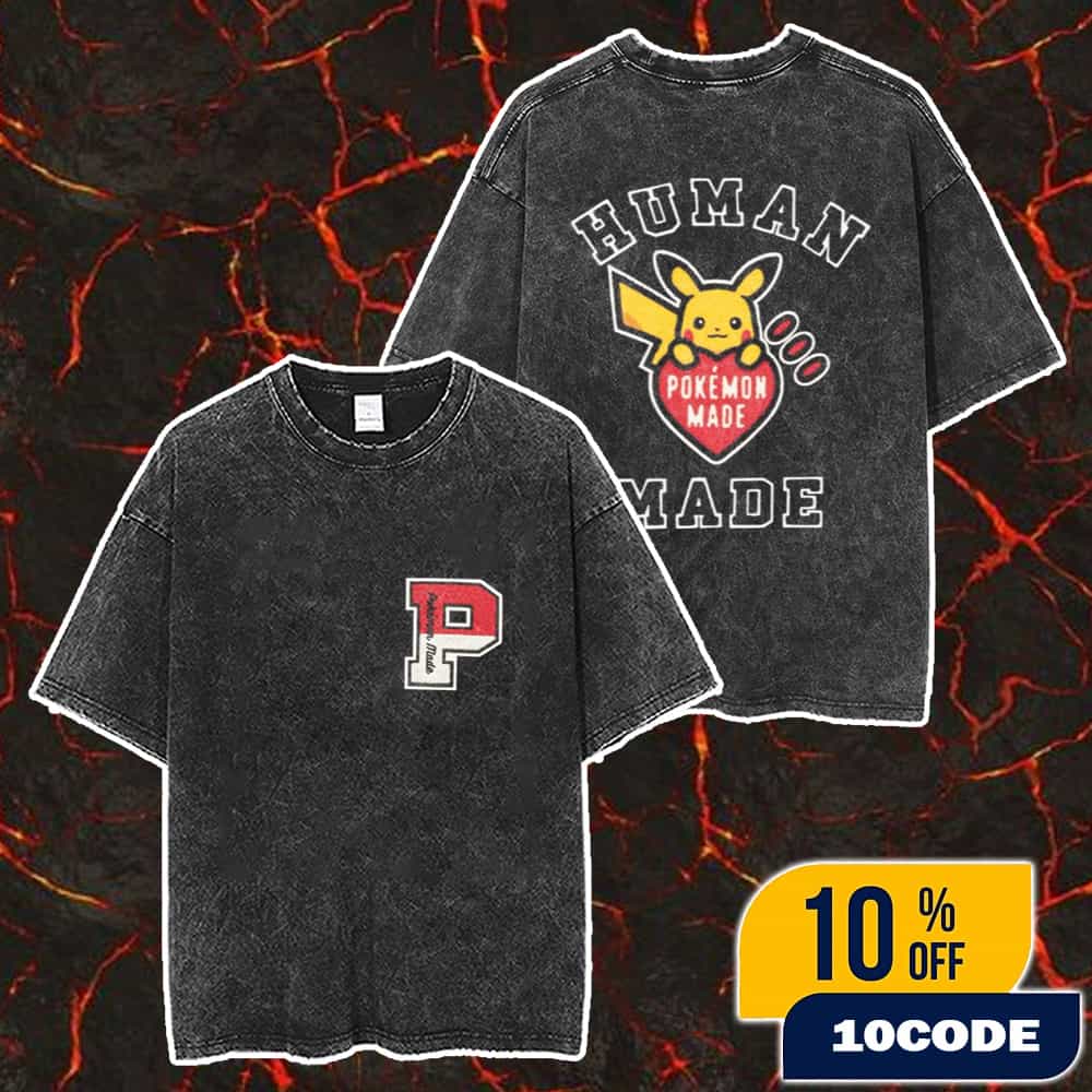 Human Made x Pokemon New Collection 2025 Merch Unisex Two Sided Washed T-Shirt
