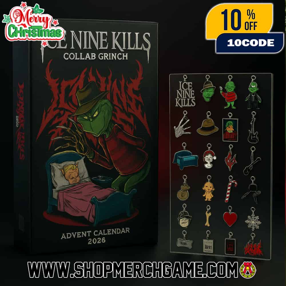 The Ice Nine Kills x Grinch Advent Calendar “A Nightmare In Whoville” 2025 Ornament Set is an exclusive 24-day horror Christmas collectible that merges American theatrical metalcore band Ice Nine Kills’ signature cinematic horror aesthetic with Dr. Seuss’s iconic Grinch character, creating a darkly twisted fusion that celebrates the band’s ongoing 2025 touring campaign and their tradition of releasing limited edition holiday merchandise. This limited edition advent calendar features 24 collectible acrylic ornaments housed in a premium paper box with inner plastic tray, each charm measuring 3cm x 3cm and showcasing exclusive designs that blend the Grinch’s sinister grin and iconic green fur with Ice Nine Kills’ horror movie-inspired imagery including skulls, blood-red backgrounds, axes, and references to the band’s concept albums “The Silver Scream” and “The Silver Scream 2: Welcome to Horrorwood” which draw inspiration from classic horror films like “The Shining,” “Friday the 13th,” “A Nightmare on Elm Street,” and “IT”. The 2025 release coincides with Ice Nine Kills’ massive “A Work of Art Tour 2025” spanning Europe from November through December with performances at major venues including Milan’s Alcatraz, Paris’s Salle Pleyel, Vienna’s Gasometer, Glasgow’s OVO Hydro, and London’s OVO Arena Wembley, following their successful “Hell of a Summer Tour” across the United States that included their annual Silver Scream Con celebration in Worcester, Massachusetts. Each ornament in this handcrafted set can be customized and displayed on Christmas trees, added to Ice Nine Kills memorabilia collections, or showcased as alternative holiday dΓ©cor, offering metalcore fans and horror enthusiasts a unique way to count down to Christmas with 24 days of twisted theatricality that captures frontman Spencer Charnas and Ice Nine Kills’ innovative approach to merging heavy music with horror cinema storytelling, creating conversation-starting holiday pieces that appeal to fans who appreciate the band’s theatrical live performances and their unique “A Christmas Gory” holiday aesthetic.