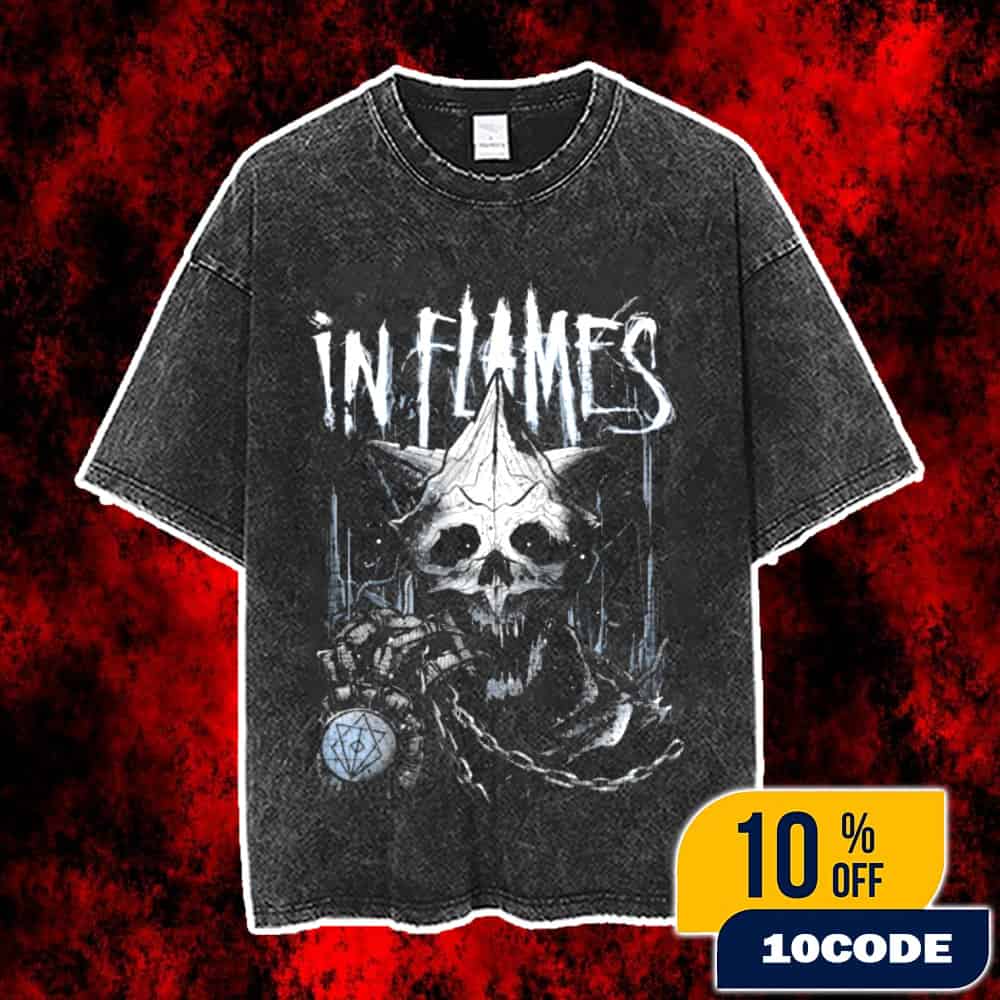 The “In Flames In Chains Official Band Merch 2025 Metal Skull Artwork Washed Unisex T-Shirt” is a mid‑2020s band shirt themed around the Swedish melodic death metal group In Flames, a pioneering act from Gothenburg, Sweden, formed in 1990 and widely credited with helping to create the Gothenburg melodic death metal sound. Designed for fans who want official, tour‑ready apparel, this unisex tee reflects the same aggressive yet melodic identity heard across classic albums like The Jester Race, Clayman and more recent releases such as the fourteenth studio album Foregone (2023), while the band continues to tour the European festival circuit and international stages into the 2020s. The “In Chains” naming matches licensed In Flames t-shirts sold via official European merch partners and rock/metal retailers, where models like “In Chains” and “In Chains We Trust” are offered as band merchandise rather than generic fashion pieces, typically in black cotton and clearly labeled as In Flames band merch. The “metal skull artwork” and “washed” details in the title align with official In Flames skull designs sold through specialist stores such as EMP, where skull-themed shirts feature large front and sometimes back prints, a black stone‑ or acid‑washed fabric for a worn, vintage texture, and are marketed as officially licensed products connected to the band’s imagery. For everyday wear, similar In Flames tees are produced in 100% cotton with short sleeves, regular or relaxed cuts, and machine‑washable construction, making them comfortable for long club shows, outdoor festivals, or casual streetwear, while unisex sizing from small up to plus sizes is common across official In Flames and partner shops. In the European market, “In Chains” shirts and comparable In Flames designs are often priced around the mid‑range for licensed metal merch (roughly 30–40 EUR before shipping and local taxes), sold through the band’s European webstore and major merch distributors that specialize in rock and metal apparel. Fans in regions such as Europe, North America, Oceania and Asia can typically obtain authentic In Flames items via the official In Flames store and authorized retailers, which stock t‑shirts, hoodies, jerseys and accessories tied to albums and tours, making this washed skull tee a suitable choice whether you are seeing the band in Gothenburg, at a European open‑air festival, or catching a club date on a wider world tour. To ensure authenticity and support the band directly, shoppers should look for clear In Flames branding, official licensing or Universal Music credits, and product‑safety or fabric certifications (such as those shown on EMP’s In Flames shirts), and when possible buy from the band’s own online channels or official tour merchandise stands at local venues.