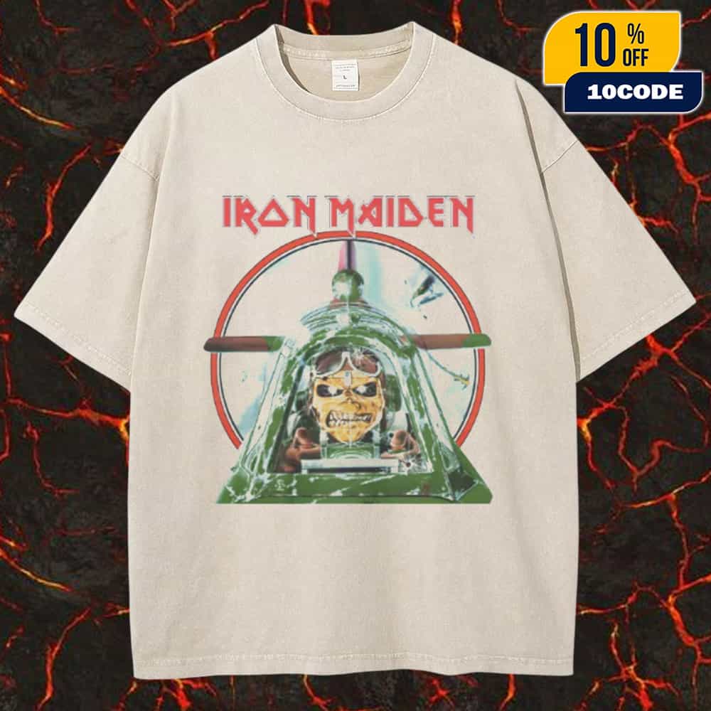 This premium unisex washed tee celebrates the 40th anniversary of Iron Maiden’s legendary Live After Death album, a seminal double-LP live recording that captured the British heavy metal icons at their absolute peak during the historic World Slavery Tour. Released on October 14, 1985, Live After Death was predominantly recorded over four electrifying nights at Long Beach Arena in California during March 14-17, 1985, with additional material from four sold-out shows at London’s Hammersmith Odeon in October 1984, documenting one of the most grueling yet triumphant tours in rock history. The World Slavery Tour spanned an astonishing 331 days across 187-189 concerts between August 1984 and July 1985, supporting the band’s iconic fifth studio album Powerslave, and featured the band’s most extravagant stage production to date, complete with Ancient Egyptian sets, mummified Eddie, towering sarcophagi backdrops, and explosive pyrotechnics that established Iron Maiden as one of the planet’s most exciting live acts. The shirt features the classic Aces High design, paying homage to one of Iron Maiden’s most beloved anthems written by founding bassist Steve Harris, a high-octane track from the Powerslave album that tells the story from the viewpoint of a British RAF pilot during the Battle of Britain in 1940, the first military engagement fought entirely with aircraft. Aces High became one of Iron Maiden’s signature opening songs, famously preceded by Winston Churchill’s stirring “We shall fight on the beaches” speech that has introduced Maiden concerts for decades, with Bruce Dickinson’s air-raid siren vocals and Harris’s racing basslines perfectly capturing the intensity of aerial combat. This 2025 New Collections piece arrives during Iron Maiden’s 50th anniversary year, coinciding with their massive Run For Your Lives World Tour 2025-2026 that kicked off in Europe and continues to celebrate five decades of heavy metal supremacy. The comfortable washed tee construction delivers a vintage, lived-in aesthetic that perfectly complements the nostalgic celebration of Live After Death’s four-decade legacy, while the unisex fit ensures accessibility for all fans who want to commemorate this milestone anniversary. As Parlophone Records releases a limited-edition colored vinyl reissue featuring blue and yellow 140g pressings, replica tour programs, and exclusive interviews with Steve Harris, Nicko McBrain, manager Rod Smallwood, and illustrator Derek Riggs, this merchandise collection serves as the perfect companion piece for collectors and dedicated metalheads. Iron Maiden’s Live After Death is widely acclaimed as not only the greatest heavy metal live album of all time but one of the most iconic live releases across all musical genres, making this 40th anniversary commemorative apparel an essential addition to any serious fan’s collection.