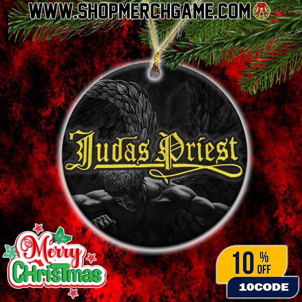 Judas Priest Sad Wings Of Destiny Christmas Ornament Ceramic Holiday Decoration Fallen Angel Design Heavy Metal Band Collectible Round Tree Ornament Gift For Metal Fans