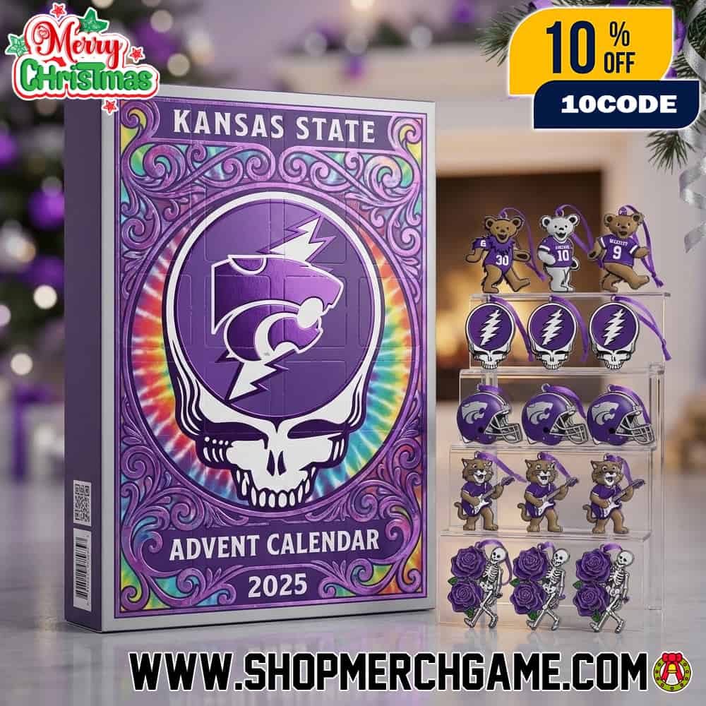 Kansas State Wildcats x Grateful Dead Advent Calendar 2025 Ornament Limited Edition Stealie Skull Purple 24 Days Christmas Countdown NCAA Football Holiday Decoration
