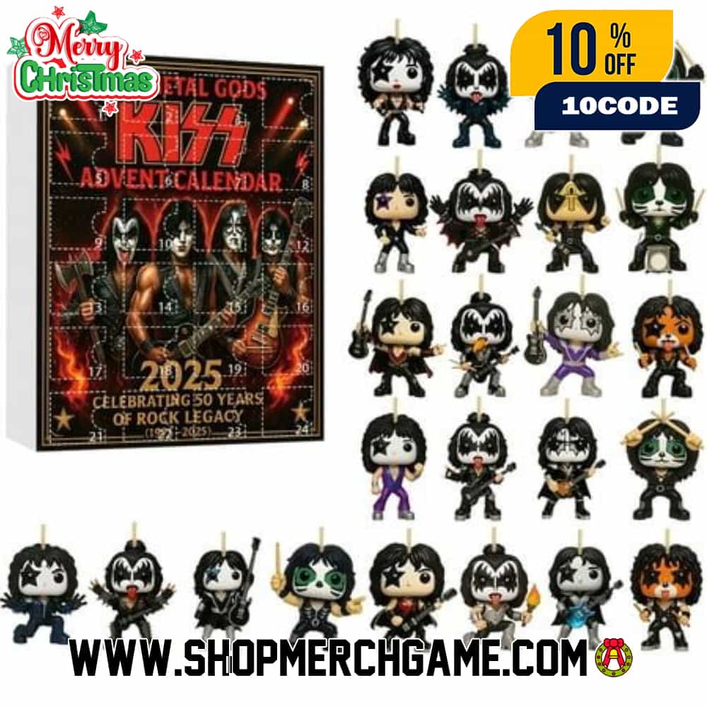 KISS Advent Calendar 2025 Celebrating 50 Years Of Rock Legacy With 24 Collectible Figurines Gene Simmons Paul Stanley Band Members Christmas Countdown Ornaments Holiday Gift For Music Fans