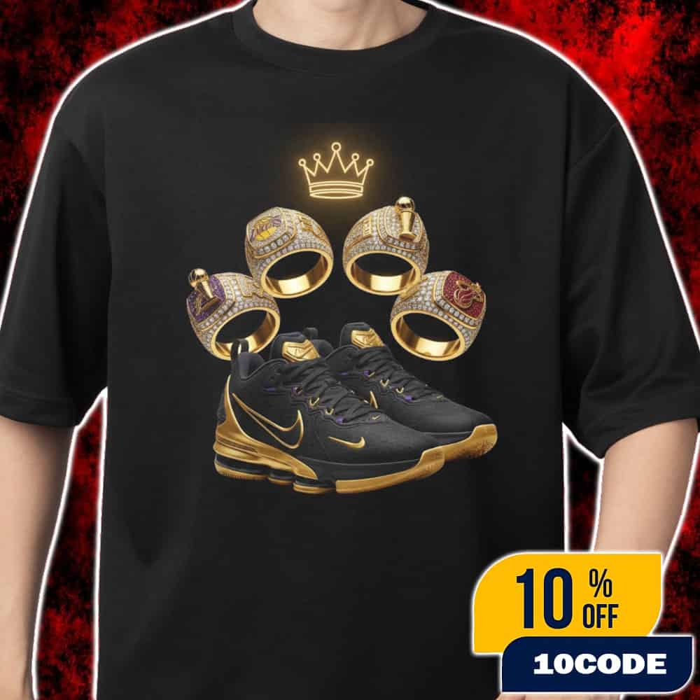 The LeBron James Championship Legacy Black Gold Lakers Ring Crown Premium Nike Basketball Sneaker Merch Unisex T-Shirt is a premium tribute to the remarkable milestones of NBA superstar LeBron James, who enters his 23rd season with the Los Angeles Lakers in 2025 having already secured four NBA championships and becoming the league’s all-time leading scorer after surpassing Kareem Abdul-Jabbar’s record in 2023. This officially licensed Nike shirt features elegant black and gold championship-inspired design elements, including a crown motif symbolizing James’ “King” moniker, a graphic of his iconic Lakers championship rings, and sneaker print details referencing LeBron’s signature Nike basketball shoe line, while celebrating his impact on the Lakers dynasty and the city of Los Angeles. In the 2025-26 NBA season, LeBron extends his legacy by setting milestones such as becoming the first player to 40,000 regular-season points, chasing his fifth championship ring, and passing legends like Vince Carter and Robert Parish for career games played, all while leading the Lakers at the Crypto.com Arena in downtown LA and continuing exclusive collaborations with Nike for limited-edition collectible basketball merch. This unisex T-shirt is a top choice for basketball fans, sneakerheads, and collectors wanting to mark LeBron’s enduring dominance, on-court achievements, and cultural influence during Lakers games, commemorative events, and championship celebrations in Los Angeles. The combination of championship symbolism, Nike’s premium quality, and contemporary sneaker aesthetics makes this shirt a standout piece for anyone honouring LeBron James’ ongoing pursuit of greatness with the Lakers franchise.