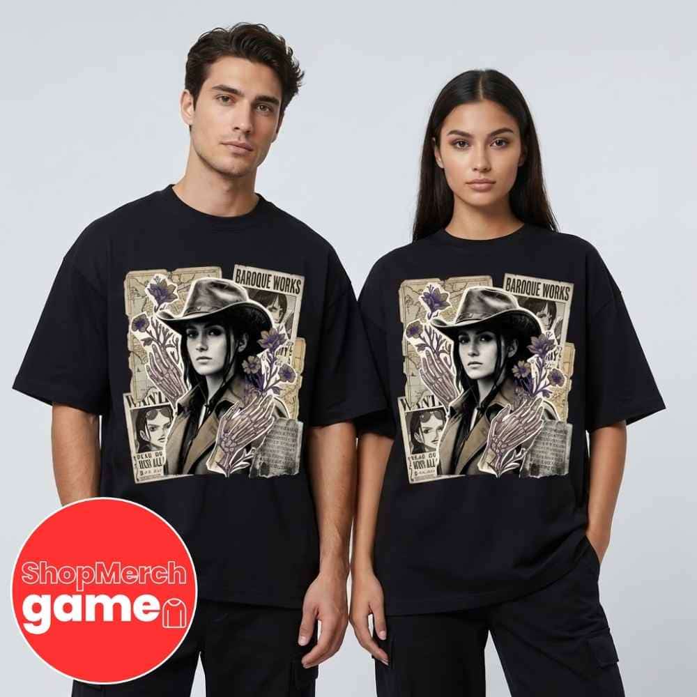 Celebrate the highly anticipated arrival of Lera Abova as Nico Robin, also known by her enigmatic Baroque Works codename Miss All Sunday, in Netflix’s One Piece Live Action Season 2, officially titled One Piece: Into the Grand Line, streaming exclusively on March 10, 2026. This vintage-inspired wanted poster t-shirt commemorates one of the most significant casting announcements in the live-action adaptation, as Russian actress and model Lera Abova brings to life one of anime and manga’s most complex and beloved characters created by Eiichiro Oda. Nico Robin first appears in the One Piece narrative as the vice-president of the criminal organization Baroque Works, working directly under the warlord Sir Crocodile, portrayed by Joe Manganiello in the series. Her character carries the ominous epithet “Devil Child” bestowed by the World Government, stemming from her tragic past on the island of Ohara where she was the sole survivor of a devastating Buster Call attack that claimed her entire homeland, including her mother Nico Olvia. As the world’s last known scholar capable of reading the ancient Poneglyphs—mysterious stone tablets that hold the secrets of the world’s lost history—Robin possesses knowledge that the World Government has deemed forbidden, making her a target with a bounty on her head since childhood. Her Devil Fruit powers, granted by the Flower-Flower Fruit (Hana Hana no Mi), allow her to sprout replicas of her limbs and eventually her entire body from any surface, making her one of the most tactically versatile fighters in the series. Season 2 of the Netflix adaptation will chronicle the Straw Hat Pirates’ journey through Loguetown and Drum Island, positioning Miss All Sunday as a central antagonist before her eventual transformation into the crew’s seventh member and official archaeologist. The series continues Netflix’s commitment to faithful adaptation, with Season 3 already in production, demonstrating the streaming platform’s confidence in this ambitious project that has captured both longtime One Piece fans and newcomers alike. This wanted poster design pays homage to the iconic bounty posters that are central to One Piece’s world-building, representing Robin’s status as one of the most dangerous individuals in the eyes of the World Government, with her bounty eventually escalating to 930,000,000 berries following the events in Wano.