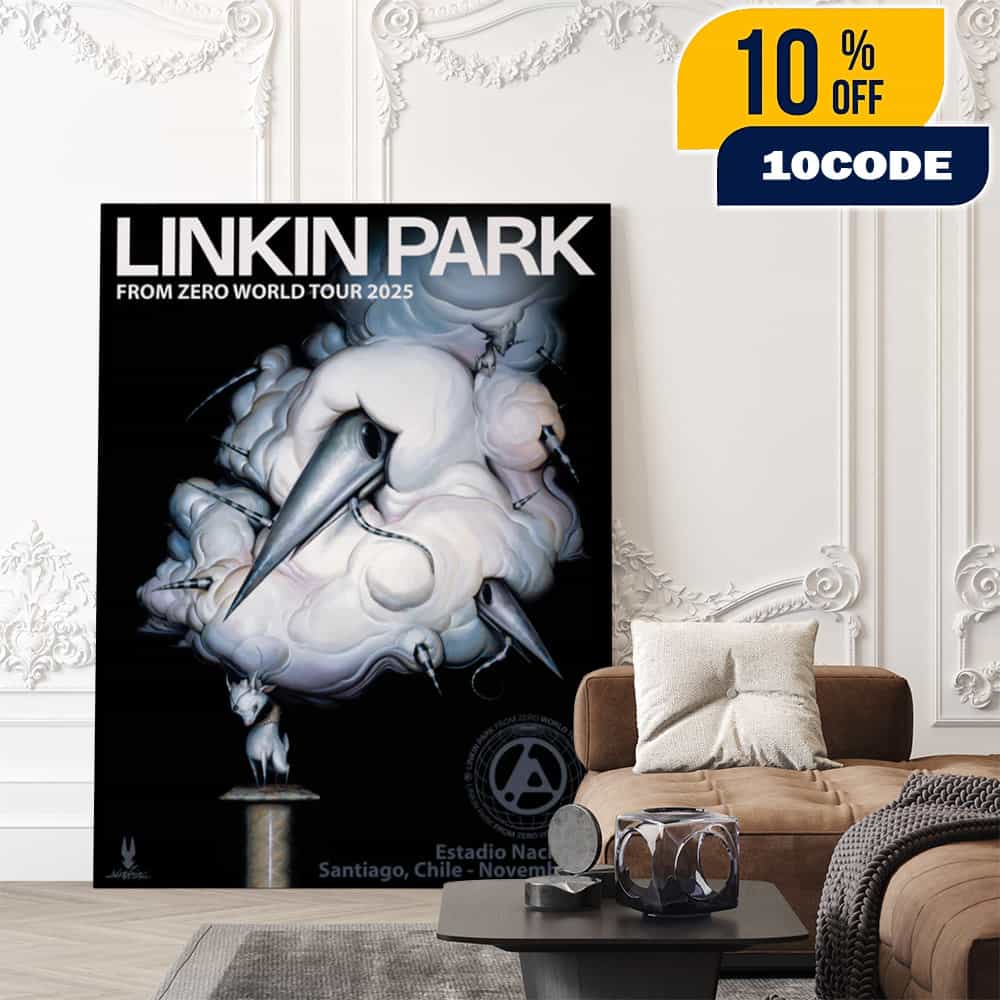 The Linkin Park From Zero World Tour Santiago Event Poster November 2nd 2025 Artwork By Greg Craola Simkins Poster Canvas Home Decor commemorates the iconic rock band’s historic performance at the Estadio Nacional Julio Martínez Prádanos in Santiago, Chile, on November 2, 2025, as part of their groundbreaking From Zero World Tour that marks a bold new chapter for the legendary group. This exclusive concert poster features the distinctive pop surrealist artwork of renowned California-based artist Greg “Craola” Simkins, whose work has graced the collections of Linkin Park members including DJ Joe Hahn and Mike Shinoda, establishing a long-standing artistic connection with the band. The Santiago show represents a pivotal moment in Linkin Park’s South American leg of their expansive 2025 world tour, which spans five continents and includes over 45 performances across Mexico, Asia, North America, Europe, and Latin America. The From Zero World Tour celebrates the band’s new album “From Zero,” released on November 15, 2024, featuring new lead vocalist Emily Armstrong alongside founding members Mike Shinoda, Dave “Phoenix” Farrell, Joe Hahn, and new drummer Colin Brittain, marking the band’s powerful evolution after years of hiatus. The Santiago concert at the Estadio Nacional, Chile’s largest and most historic stadium with a capacity of approximately 48,665 spectators that can expand to over 60,000 for major concerts, promises an unforgettable night featuring both new tracks from “From Zero” such as “The Emptiness Machine” and “Heavy Is the Crown” alongside reimagined versions of the band’s timeless classics. Greg “Craola” Simkins, born in 1975 in Torrance, California, is one of the most prolific artists working today, bridging pop surrealism and graffiti art with fine art painting skills, and his diverse body of work has been displayed in galleries and museums throughout the world, making this officially licensed poster a genuine piece of contemporary art history. The tour tickets for the From Zero World Tour range from $59 to over $1,200 depending on seating location and city, with the Santiago show being one of the highly anticipated stops following performances in Bogotá on October 25, Lima on October 28, and Buenos Aires on October 31, before continuing to Brazil. This premium canvas home decor piece not only serves as a collectible memento of Linkin Park’s revolutionary comeback with Emily Armstrong, whose “once-in-a-generation voice” has been praised by Mike Shinoda as bringing new energy to the band’s iconic sound, but also represents the intersection of music history and contemporary visual art through Simkins’ unique surrealist aesthetic that draws from pop culture, the old masters, nature, and carnival kitsch. The Estadio Nacional Julio Martínez Prádanos, located in the Ñuñoa district of Santiago and easily accessible via metro line L5, has hosted countless legendary international concerts since Rod Stewart became the first international artist to perform there, drawing over 75,000 fans, making this venue an iconic destination for music fans throughout Chile and South America.