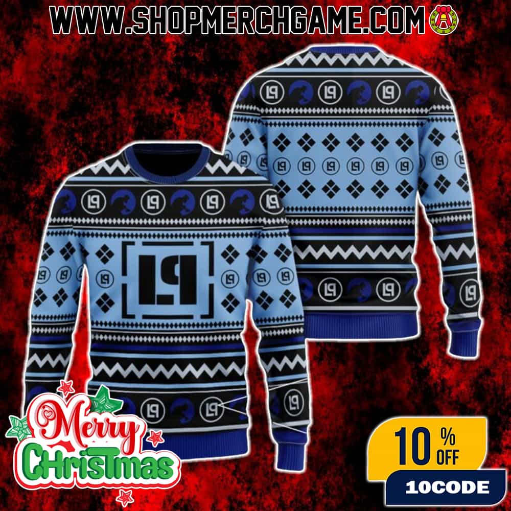 Linkin Park Logo Blue Ugly Christmas Sweater Rock Band Holiday Knit Pullover