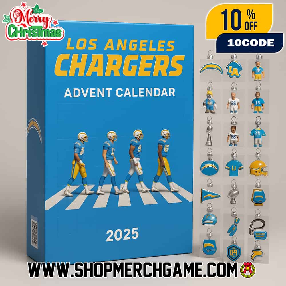 Los Angeles Chargers Advent Calendar 2025 Ornament Set 24 Day Holiday Countdown NFL Football Collectible Decorations With Player Figurines Helmet And Team Logo Charms