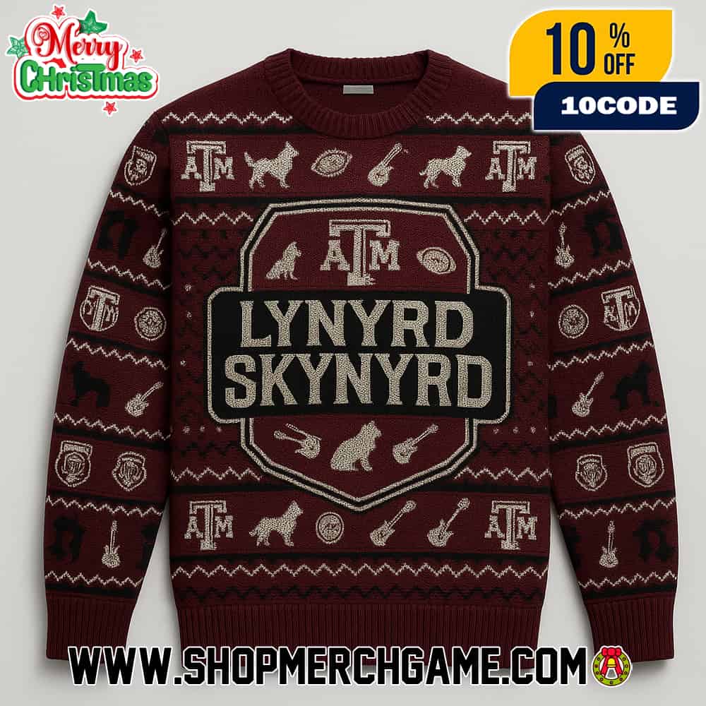 Lynyrd Skynyrd Ugly Christmas Sweater x Texas A&M Knit Pullover With Classic Rock Band Design