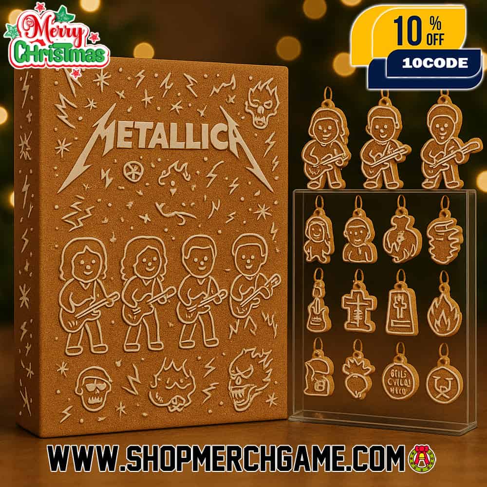Metallica Advent Calendar 2025 Ornament Set 24 Day Holiday Countdown With Gingerbread Band Members Ride The Lightning Skull Flame Thrash Metal Collectible