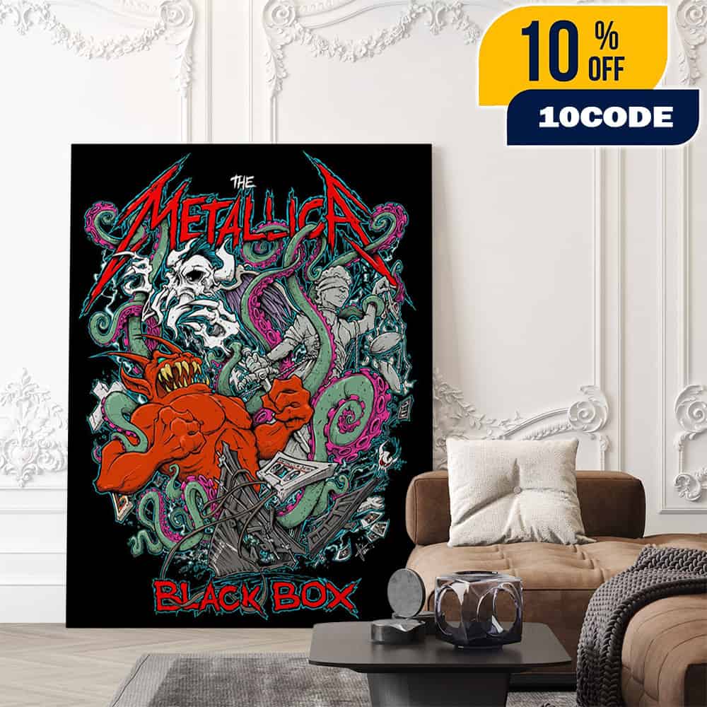 The Metallica Black Box Eruption Screen Printed Poster is an official limited-edition wall art print created for Metallica’s Black Box archival project and fan community, featuring exclusive artwork by illustrator Tony Squindo rather than generic fan-made art. Originally sold through Metallica’s own store as a Fifth Member–only item, it was produced as a numbered screen print measuring approximately 18 x 24 inches, emphasizing its status as a true collector’s poster for serious Metallica fans. The Metallica Black Box itself is the band’s ongoing digital archive and virtual museum, launched to share rare audio, video, photos, and memorabilia from more than forty years of heavy-metal history, which gives this print a documented place in the official narrative of the group. Within this online museum, curated exhibitions such as “The Art of Metallica” showcase classic gig posters and visual design from the band’s personal archives, and Squindo’s Eruption-style work fits squarely into that tradition of officially sanctioned Metallica artwork. During its original sales window, the Eruption screen print was priced at 75 USD, limited to one copy per household, and restricted to registered Fifth Members, reinforcing its scarcity and desirability among collectors worldwide. A small percentage of orders were randomly fulfilled with a special rainbow-foil variant of the design, creating an additional “chase” version that has become especially sought after on the secondary market, where official Squindo Black Box posters continue to appear. Squindo, a long-time Metallica collaborator whose credits include posters, event pieces, and other official merchandise, is known for bold, cartoon-influenced heavy-metal imagery that has been featured in band-related projects, interviews, and exhibitions across the globe. His collaborations with Metallica have appeared at pop-up events, takeovers, and show-related merch drops, further cementing his role as one of the key visual storytellers of the band’s modern era rather than a one-off guest artist. For collectors, this means the Metallica Black Box Eruption Screen Printed Poster functions not only as décor but also as a documented piece of the band’s visual history that can be referenced back to an official product listing and museum context. Because the piece was available exclusively to the official fan club through Metallica’s own online store, authentic examples typically feature official branding and a hand-numbered edition mark, details that buyers should verify carefully when purchasing on the resale market in 2025 and beyond. Listings on reputable memorabilia platforms show that the poster still circulates among fans, often commanding higher prices than its original retail cost due to its limited run, chase foil variant, and fan-club-only availability. Framed at full size or mounted to canvas, the artwork works as a focal point in a music room, studio, office, or living room, combining premium home décor with authenticated heavy-metal history that appeals equally to Metallica enthusiasts in the United States, Europe, and worldwide audiences searching for genuine, high-quality Metallica Black Box wall art.
