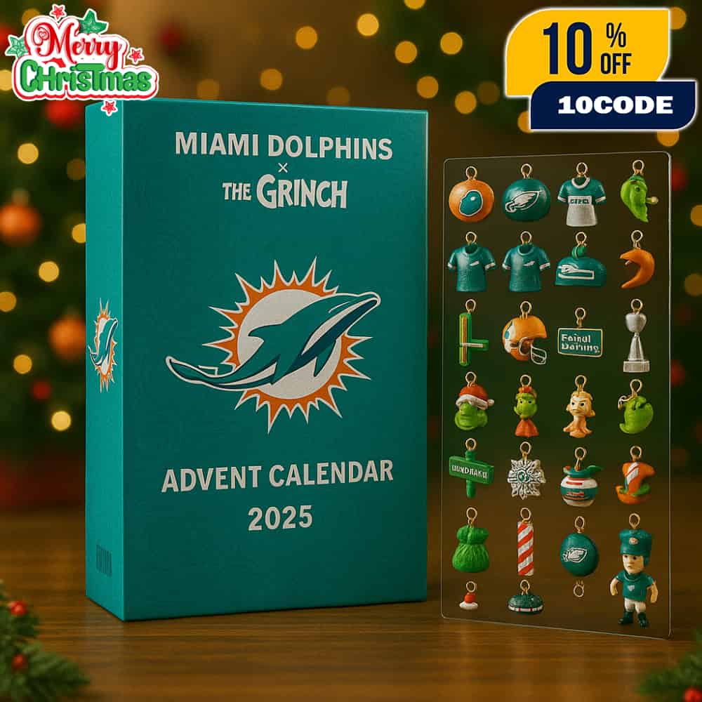 The Miami Dolphins x The Grinch Advent Calendar 2025 Ornament Set Limited Edition combines Dr. Seuss’s beloved Christmas character with one of the NFL’s most storied franchises, offering a 24-day holiday countdown for fans navigating a challenging 2024-2025 season where the Dolphins finished 2-7 through nine weeks under head coach Mike McDaniel, with quarterback Tua Tagovailoa struggling to replicate his 2023 NFL-leading 4,624 passing yards after signing a four-year, $212.4 million contract extension in July 2024. This officially licensed collaboration honors Miami’s legendary championship legacy, particularly the iconic 1972 perfect season when the Dolphins became the only team in NFL history to complete an undefeated campaign at 17-0, culminating in a Super Bowl VII victory over the Washington Redskins 14-7 at the Los Angeles Memorial Coliseum on January 14, 1973, under legendary coach Don Shula’s leadership with quarterback Bob Griese returning from injury to secure the historic triumph. The limited edition advent calendar features 24 collectible ornaments merging the Grinch’s playful holiday spirit with Miami’s iconic aqua, orange, and white colors, showcasing designs celebrating the franchise’s two Super Bowl championships and their dominant AFC East legacy with 135-69-1 all-time home record against division rivals. Each ornament serves as festive tree decoration and championship memorabilia for Dolphins fans at Hard Rock Stadium, perfectly timed with WildBrain CPLG’s expanded Grinch licensing partnerships as the franchise attempts to end their 16-year AFC East title drought despite holding just 28% playoff odds and requiring help from other teams to secure postseason qualification.