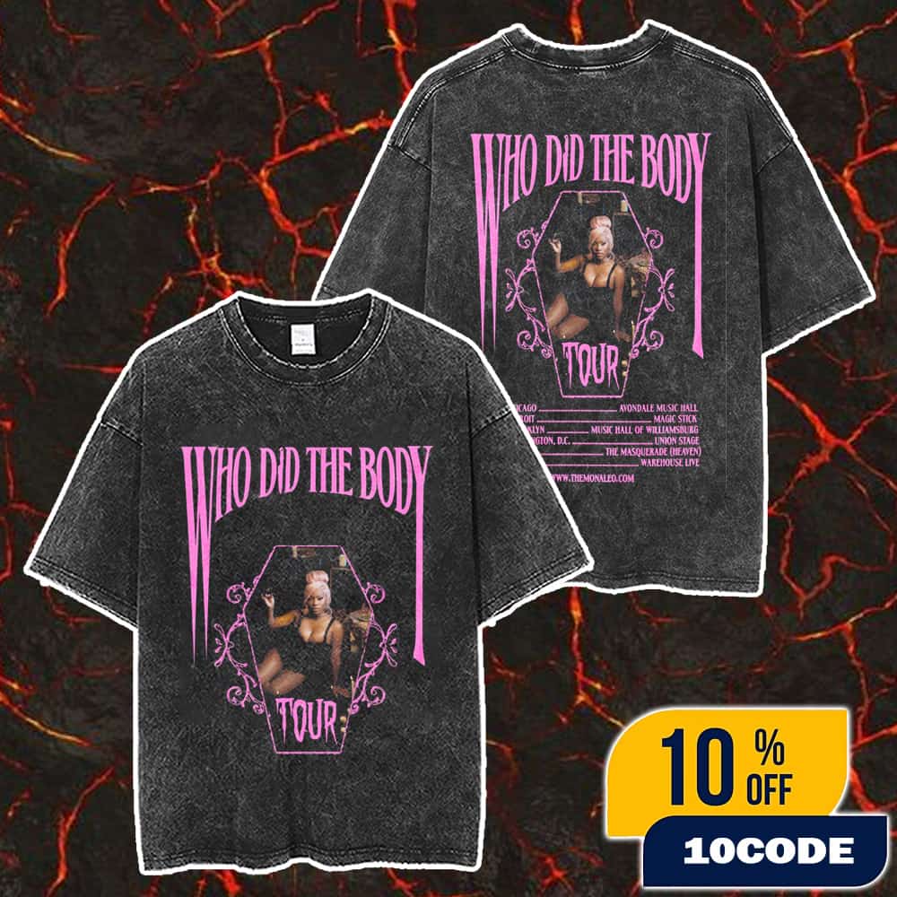 Monaleo Who Did The Body Tour December 2025 Poster Tour Dates Gothic Coffin Pink Black Six Cities Concert Merch Unisex Two Sided Washed T-Shirt