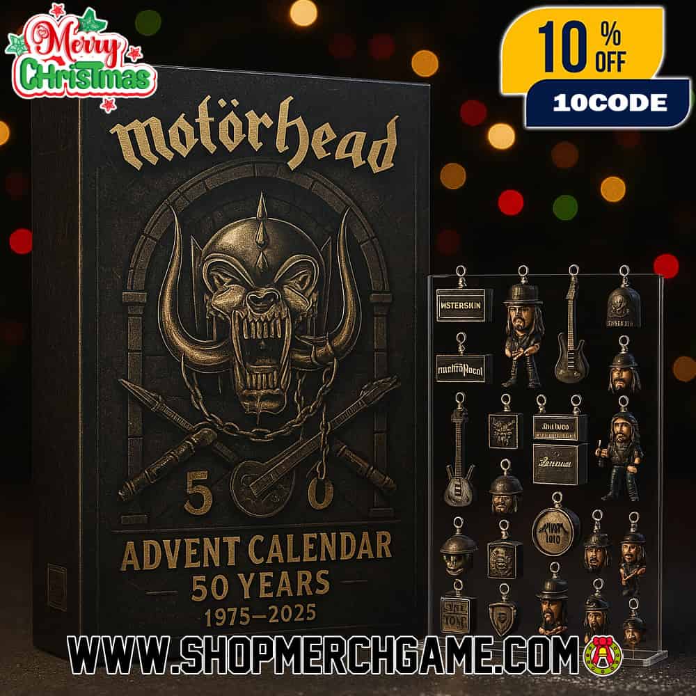 The Motorhead Advent Calendar 50 Years 1975-2025 Ornament Set commemorates the monumental golden anniversary of the legendary English rock band founded in London in June 1975 by bassist and vocalist Lemmy Kilmister, who remained the only constant member until his passing in December 2015 and whose ashes were immortalized in a statue ceremony in Stoke-on-Trent on May 9, 2025. This collectible holiday countdown gift features 24 intricately designed ornaments showcasing the band’s iconic mascot Snaggletooth (War-Pig)—a menacing fusion of gorilla cranium, dog teeth, and wild boar tusks topped with a spiked helmet adorned with chains and iron crosses, created by legendary artist Joe Petagno in 1977 to represent Motorhead’s raw, aggressive sound—alongside guitar shields, plaques, and tributes to Lemmy’s uncompromising legacy. Perfect for fans celebrating the band’s 50th anniversary in 2025 with special deluxe color vinyl reissues of landmark albums including No Sleep ‘Til Hammersmith (1981), No Remorse, and No Sleep At All, as well as multiple tribute tours across Europe by bands like Motörblast and Snaggletooth honoring the band’s enduring influence. Each ornament embodies Motorhead’s pioneering spirit as precursors to the New Wave of British Heavy Metal, with their signature fast-paced, unrelenting sound epitomized by classics like “Ace of Spades” bridging the gap between punk and metal, making this limited edition set an essential piece of rock history for devotees of the band’s “Born to Lose, Live to Win” philosophy.