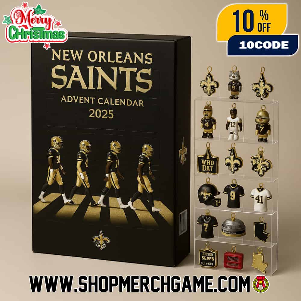 New Orleans Saints 2025 Advent Calendar Ornament Set 24 Day Holiday Countdown NFL Football Who Dat Collectible Decorations With Player Figurines And Team Logo Charms