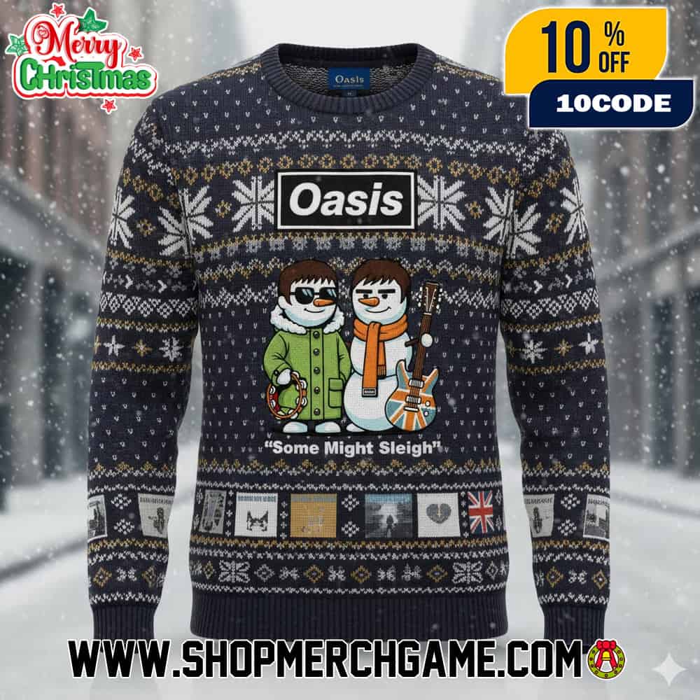 Oasis Some Might Sleigh Ugly Christmas Sweater Knitted Jumper Snowman Rock Band Holiday Gift For Music Lovers Britpop Fan Merch