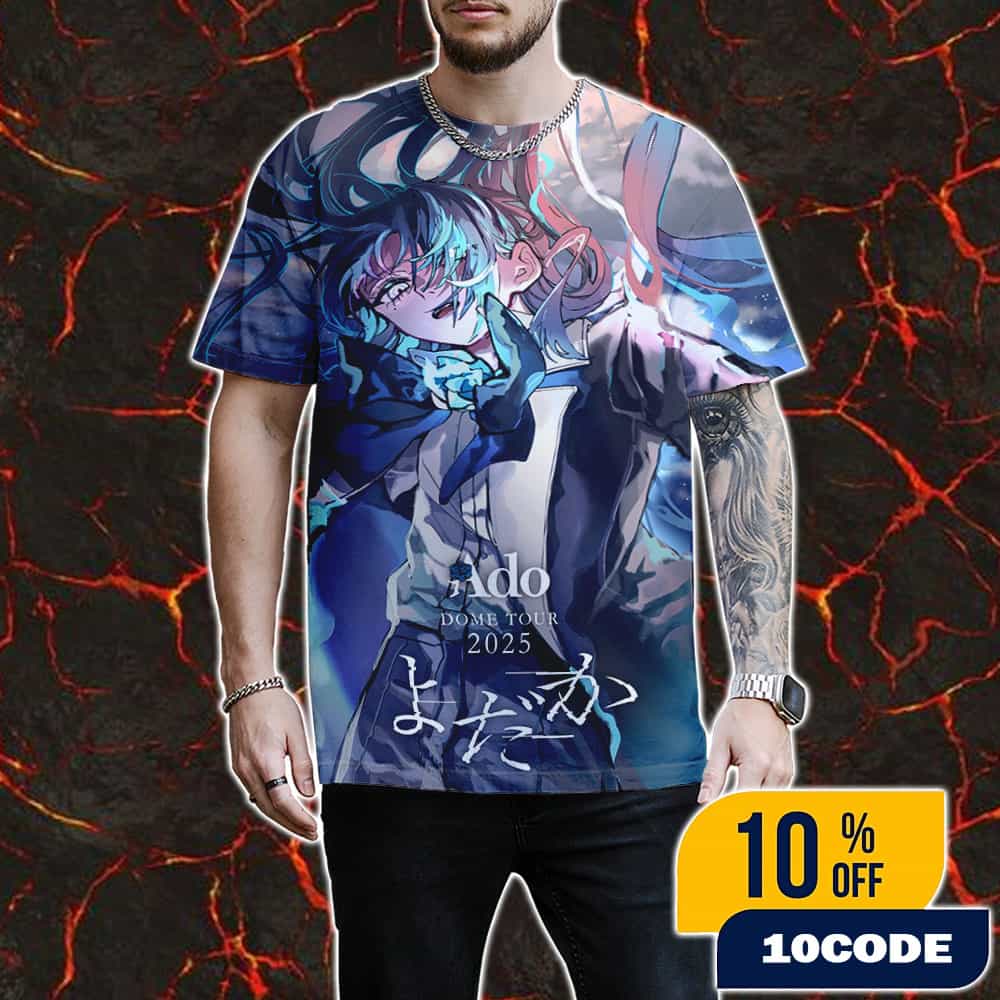 This Official Poster Ado Dome Tour 2025 Yodaka Nightjar 5 Years Debut Anniversary World Tour 2025 Hibana Artwork By Orihara All Over Print Graphic T-Shirt and Hoodie celebrates the monumental achievements of Japan’s most groundbreaking young singer, Ado, who debuted at age 17 in 2020 with her chart-topping single “Usseewa” and has since become a global J-pop phenomenon. The merchandise features exclusive artwork by renowned illustrator ORIHARA, who created the stunning key visuals for both Ado’s historic dome tour “Yodaka” (meaning Nightjar) taking place at Tokyo Dome (November 11-12) and Kyocera Dome Osaka (November 22-23, 2025), as well as her unprecedented second world tour “Hibana” (meaning Spark) spanning 33 cities across multiple continents from April to August 2025. This commemorative apparel marks Ado’s fifth anniversary since her major label debut, celebrating her remarkable journey from anonymous utaite cover singer to international superstar who became the first Japanese artist to top Apple Music’s Global Top 100 chart with “New Genesis” from One Piece Film Red, achieved multiple Billboard Japan records, and became the first solo female artist to perform at Japan National Stadium. The design captures the essence of both tour concepts – the mystical nightjar symbolism of her dome performances and the fiery spark energy of her global conquest – making this official merchandise a must-have collector’s item for fans attending these historic concerts that solidify Ado’s position as one of the most influential J-pop artists of her generation.