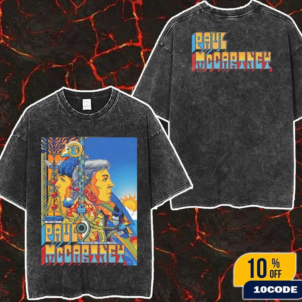 This official Paul McCartney washed two-sided t-shirt commemorates the legendary Beatles icon’s historic performance at BOK Center in Tulsa, Oklahoma on October 22, 2025, marking the eighth stop on his acclaimed Got Back North American Tour that brought his first extensive series of concerts across the US and Canada since 2022. Sir Paul McCartney, the most successful songwriter and recording artist in music history with 83 years of age and over 60 years of performing, delivered an unforgettable 36-song setlist at the 19,199-capacity arena starting at 8:20 PM, featuring timeless Beatles classics like “Hey Jude,” “Let It Be,” “Yesterday,” and “Get Back,” Wings hits including “Band on the Run” and “Live and Let Die,” plus solo masterpieces, with special moments including a “virtual duet” with John Lennon during the rooftop concert footage and touching tributes to George Harrison performed on ukulele. The BOK Center, Tulsa’s award-winning state-of-the-art sports and entertainment venue located at 200 S Denver Ave in downtown Tulsa, has hosted legendary performers since opening in 2008 and was named Arena of the Year by the International Entertainment Buyers Association (IEBA) in 2016 and 2018, with McCartney’s performance marking a triumphant return since his only arena show at the venue during his summer 2009 tour. The Got Back Tour 2025, which launched September 29 at Acrisure Arena and concluded November 24-25 in Chicago, featured Paul’s long-awaited return to cities like Las Vegas, Denver, Minneapolis, New Orleans, Atlanta, and Nashville, following his historic three-night stand at New York City’s Bowery Ballroom earlier in 2025 that Billboard hailed as “a religious experience” and NPR raved “Paul McCartney has so much swag it’s ridiculous.” This premium washed two-sided t-shirt features exclusive poster artwork from the October 22nd Tulsa event on both front and back with vintage distressed finish, capturing the energy of one of rock history’s most iconic performances where Paul brought to life the most beloved catalogue in music—spanning his Beatles, Wings, and solo careers that have formed the soundtracks of multiple generations with over 100 million RIAA-certified units and countless chart-topping hits like “Yesterday” (the most covered song in history), “Michelle,” “Eleanor Rigby,” and “Maybe I’m Amazed.” The Tulsa concert featured memorable fan interactions including Paul reading crowd signs, crowd participation during songs, and a dedication of “My Valentine” to his wife Nancy Shevell who attended the show, while the legendary performer demonstrated his mastery of multiple instruments switching between bass, acoustic guitar, electric guitar, ukulele, and piano throughout the evening. This limited-edition washed t-shirt serves as an authentic collectible for fans who witnessed Sir Paul McCartney’s legendary Tulsa performance, devotees celebrating his unparalleled 60+ year career from The Beatles’ formation in 1960 through his knighthood and status as the most successful musician in history, or music lovers honoring the timeless songs that have defined popular music and continue to inspire audiences worldwide across every generation.