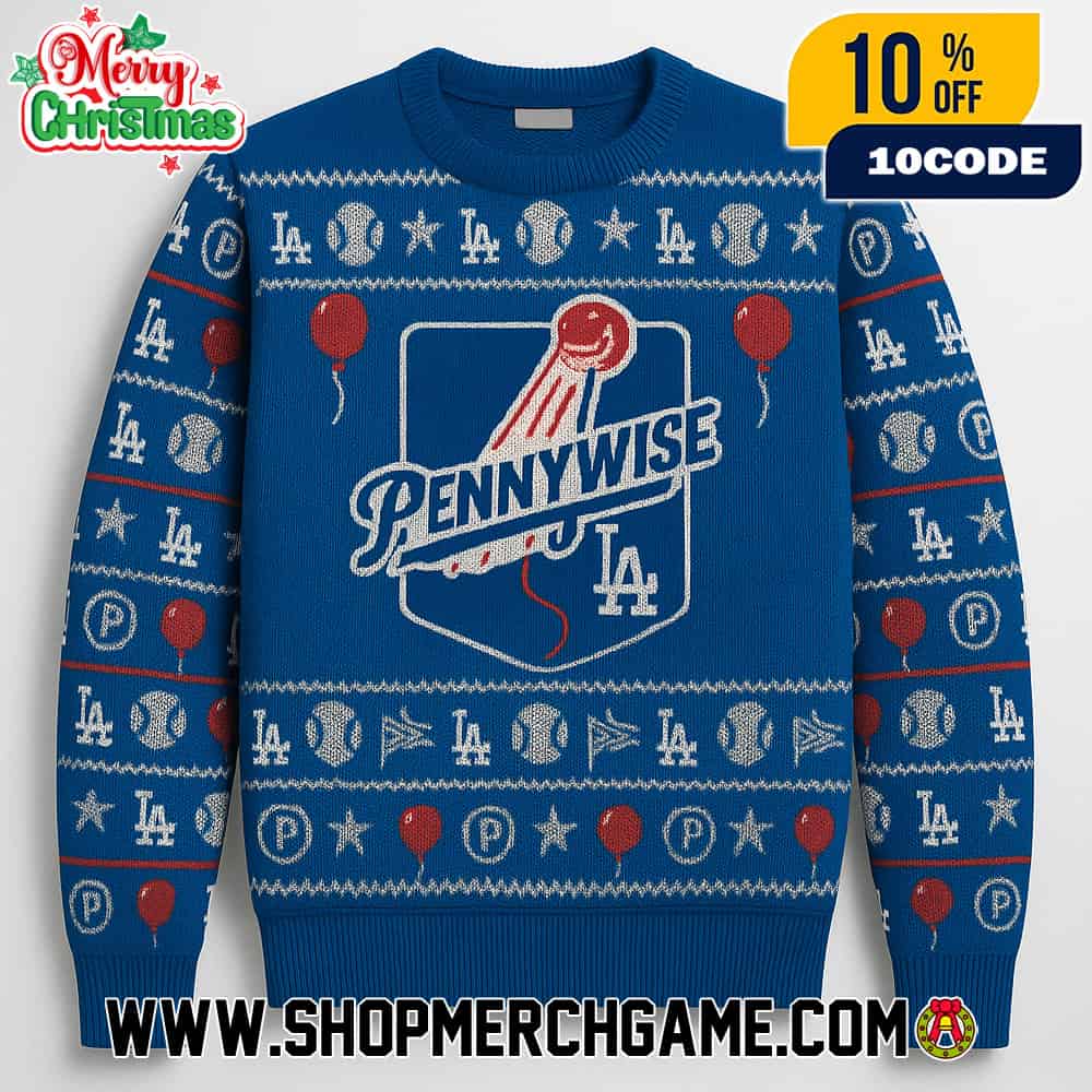 Pennywise x Los Angeles Dodgers Ugly Christmas Sweater Unisex Jacquard Knit Crewneck Fair Isle Blue Holiday Gift